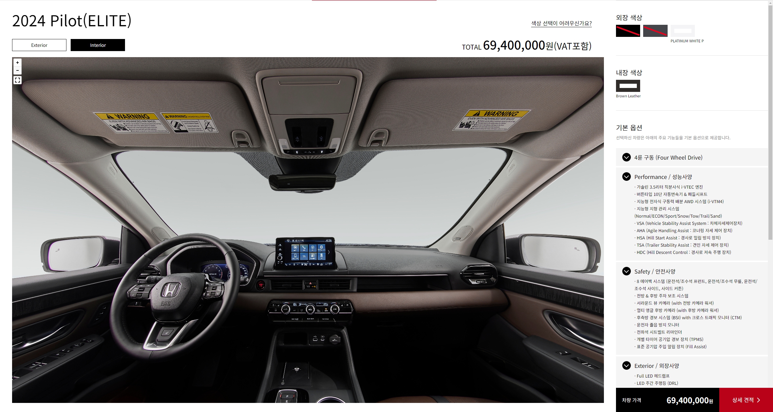 2024 혼다 파일럿 가격 : 6,940 만원