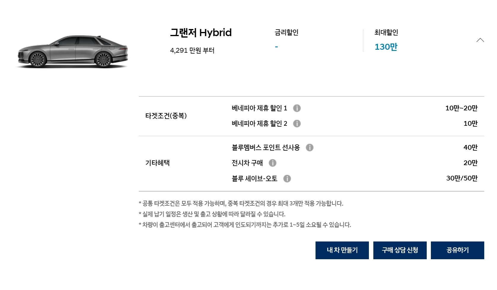 그랜저 하이브리드는 지난달과 마찬가지로, 역시 별도 할인은 없습니다.