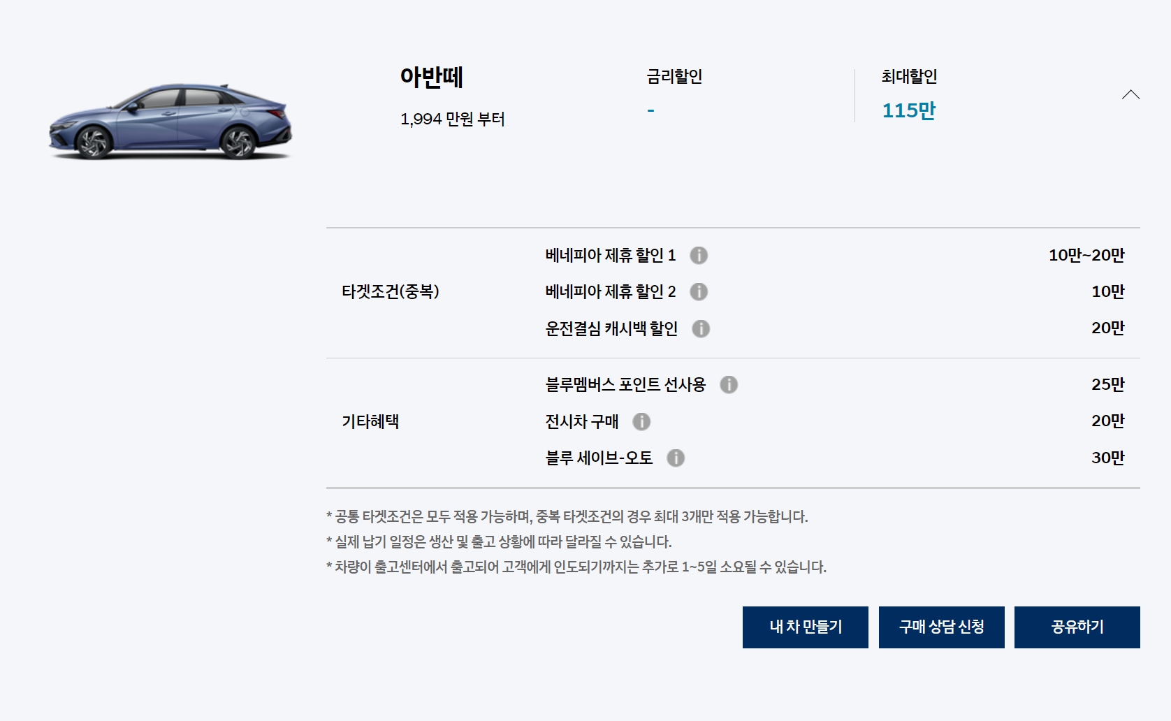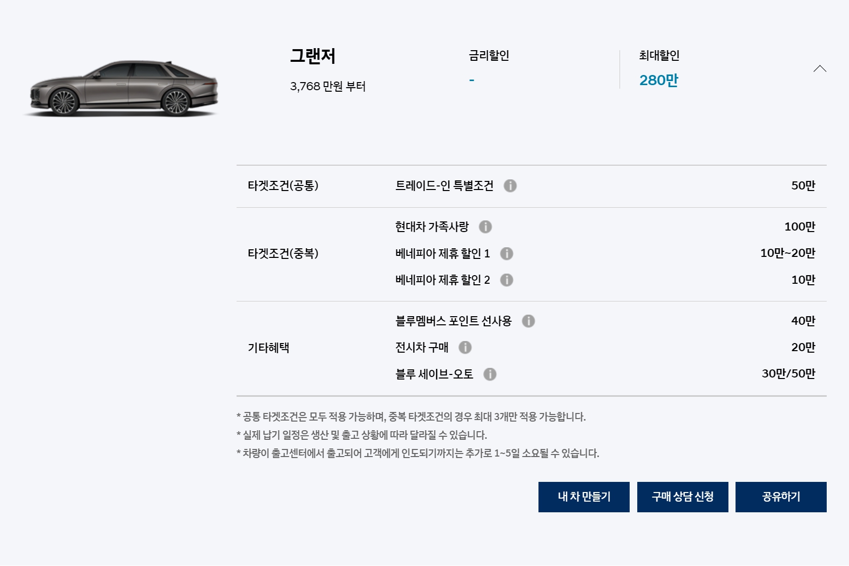 지난달 대비 큰 차이는 없습니다만, 현대차 가족사랑이 200만원 추가되었습니다.