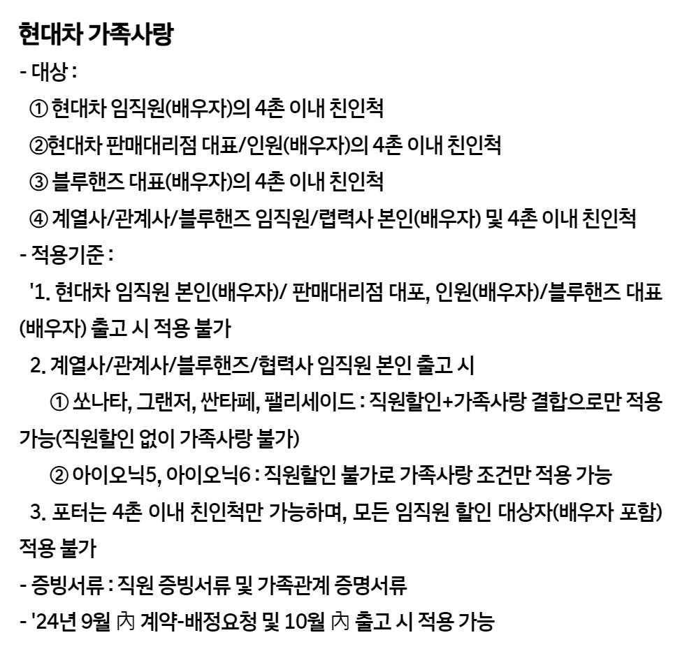 오늘은 여러분들께 2024년 9월 현대자동차 판매조건에 대해 소개해 드려볼까 합니다.
