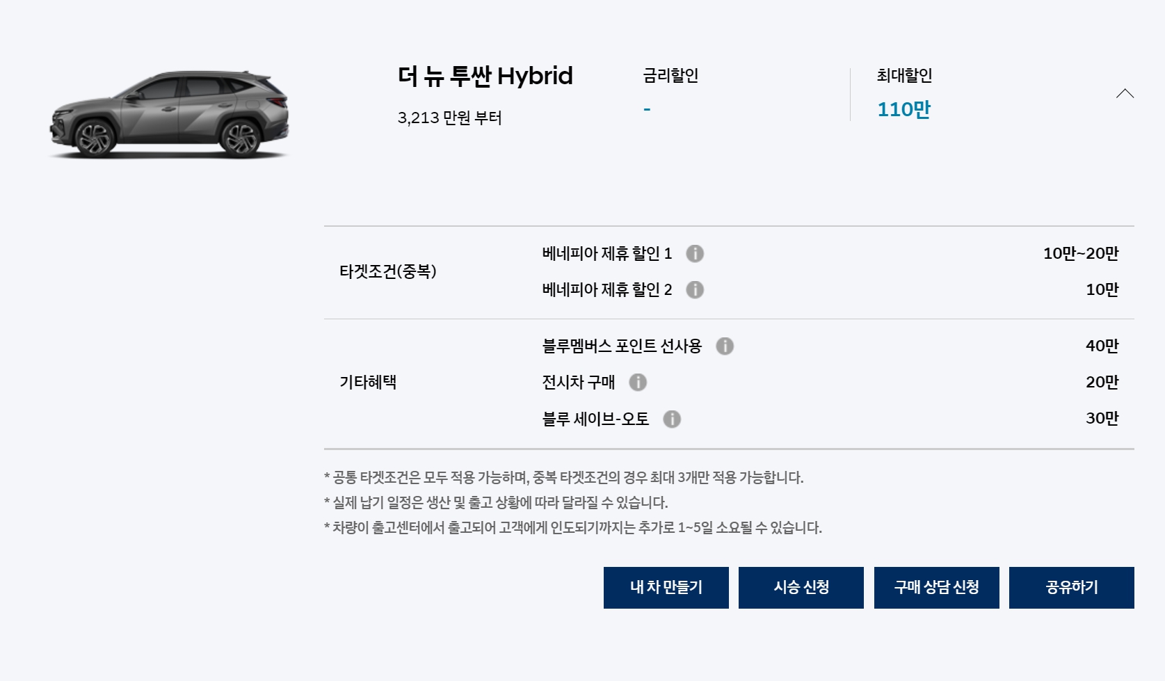 물론, 모두 받을 수 없는 할인이긴 하지만, 현대차 이 외에 계열사, 블루핸즈 가족도 모두 적용이 됩니다.