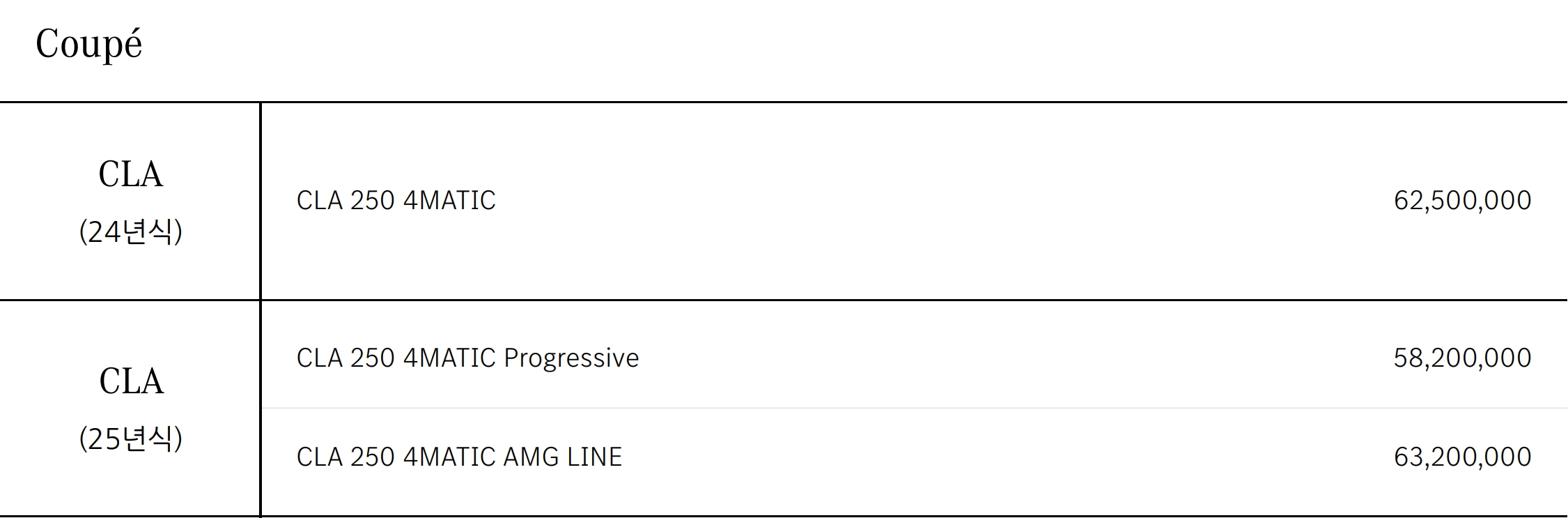 2025 CLA250 4매틱 프로그레시브 : 5,820 만원