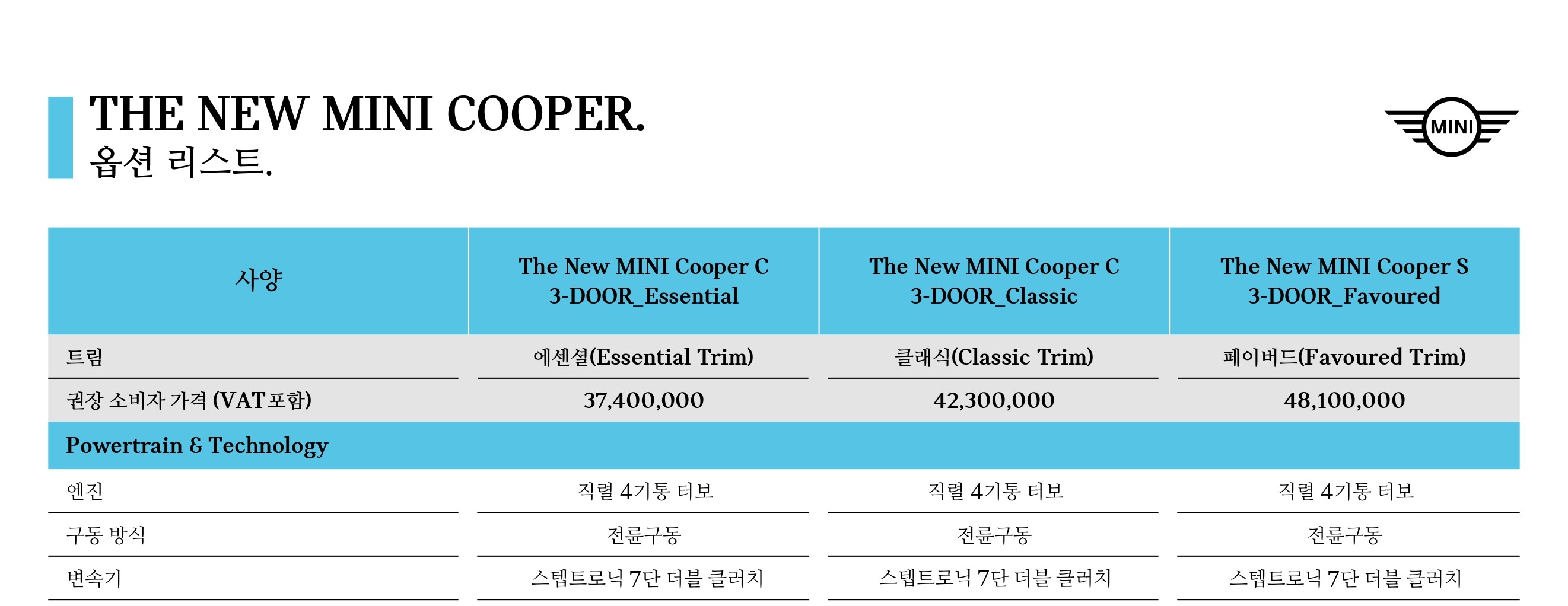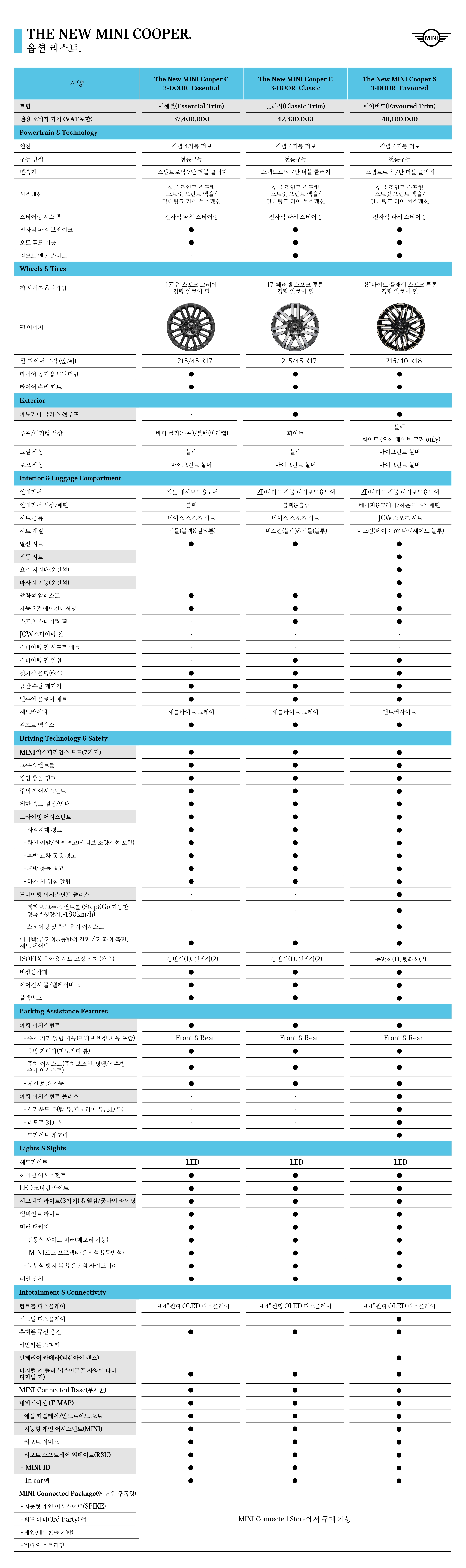 ▼ 2025 미니쿠퍼 옵션표 ▼