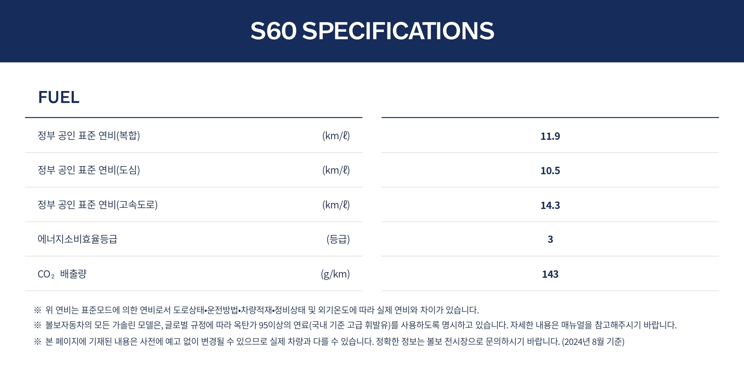 사실, S60은 24년형이나 25년형 모두 단일 트림으로만 수입이 됩니다.