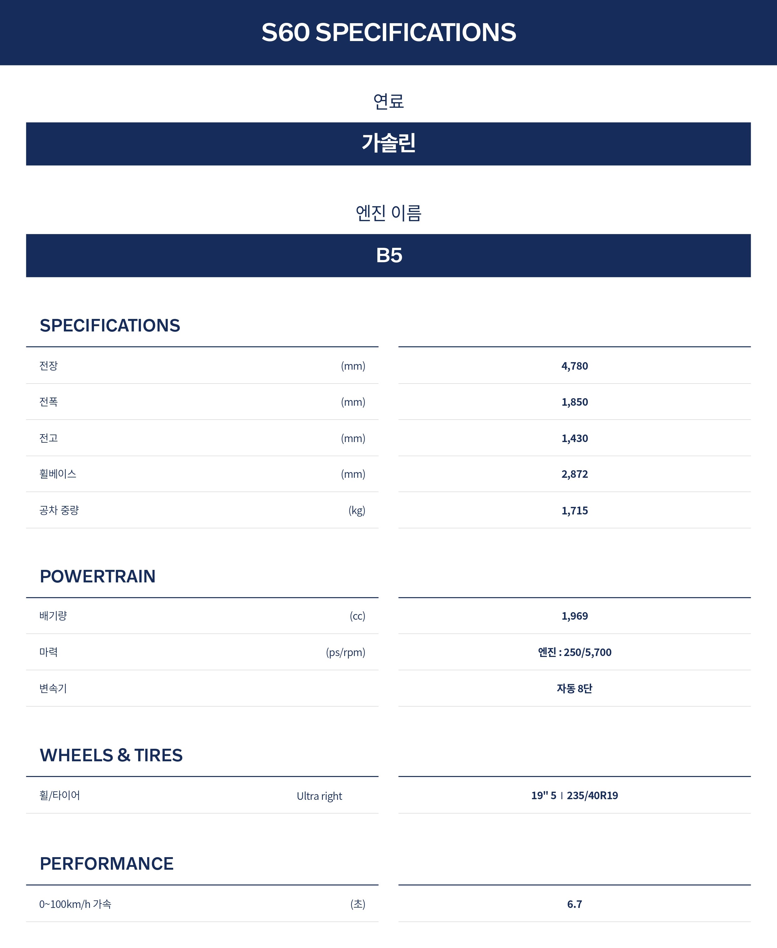 ▼ 2025 볼보 S60 제원 ▼
