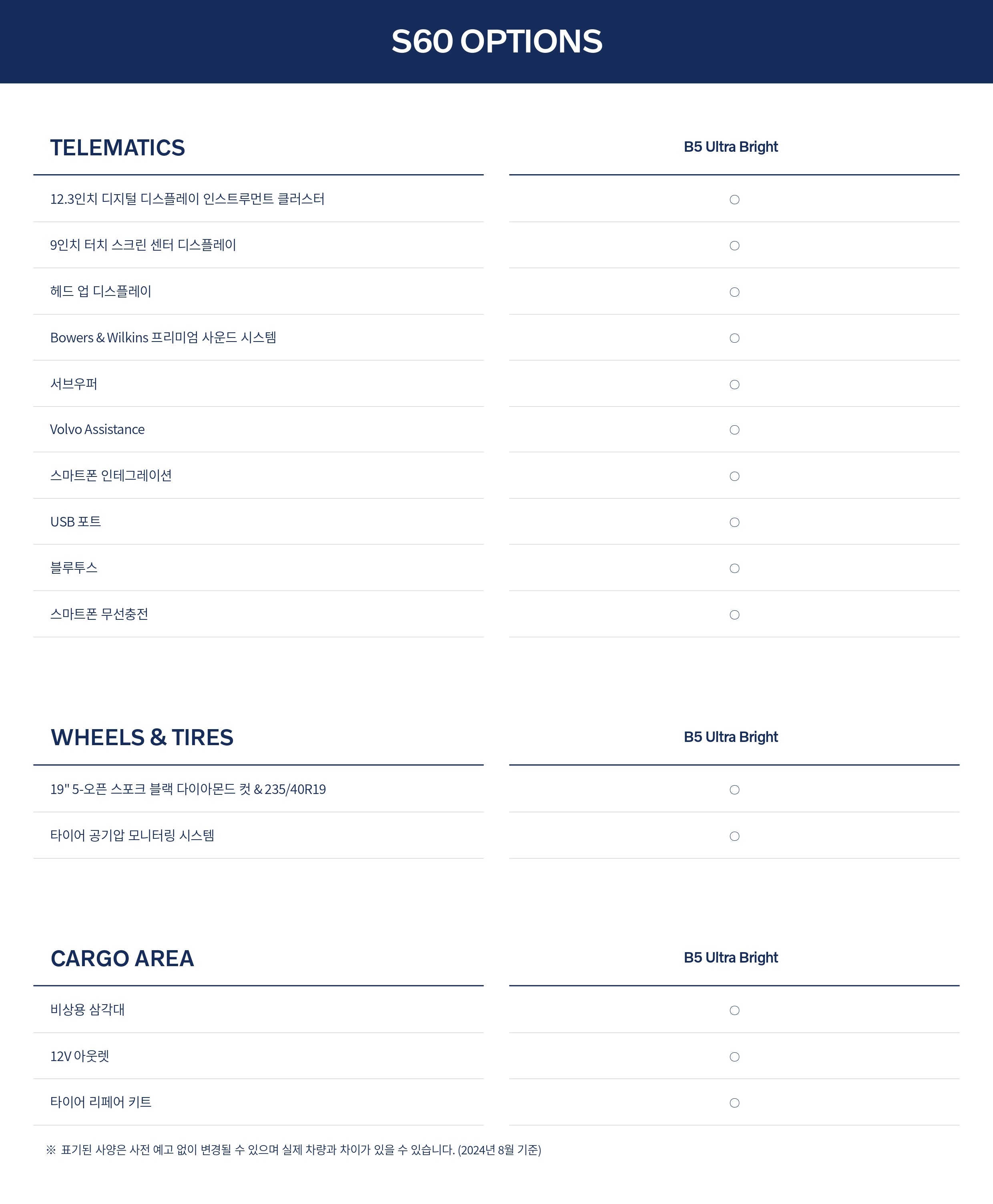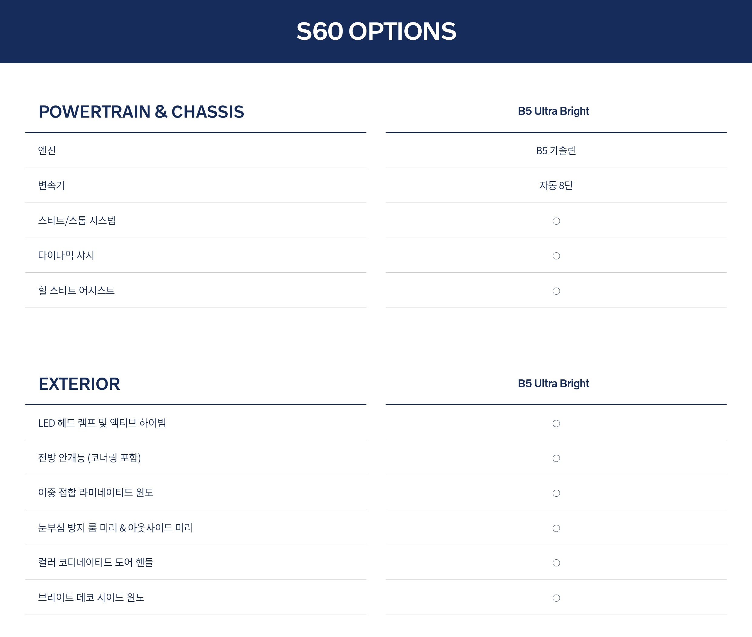 ▼ 2025 볼보 S60 옵션표 ▼
