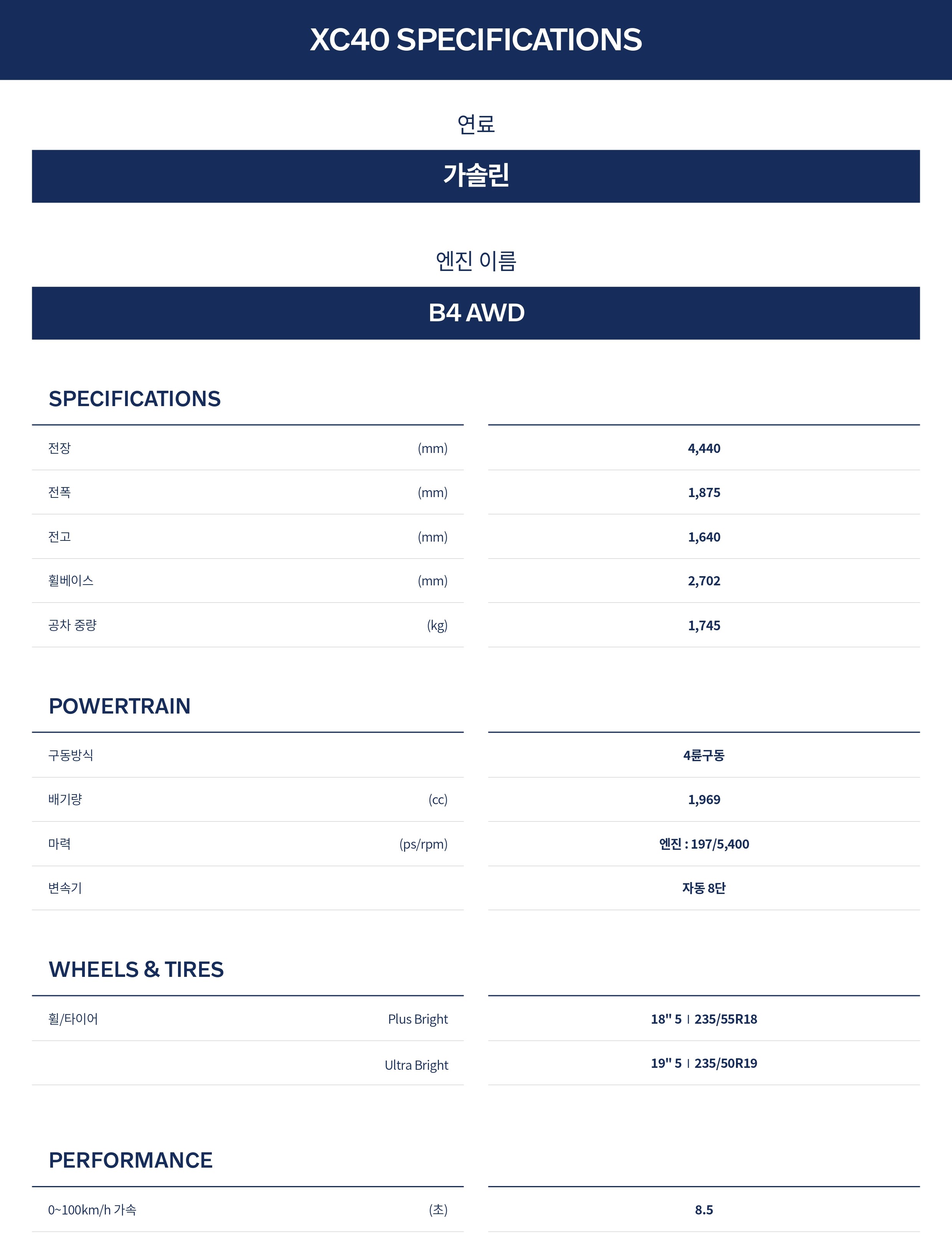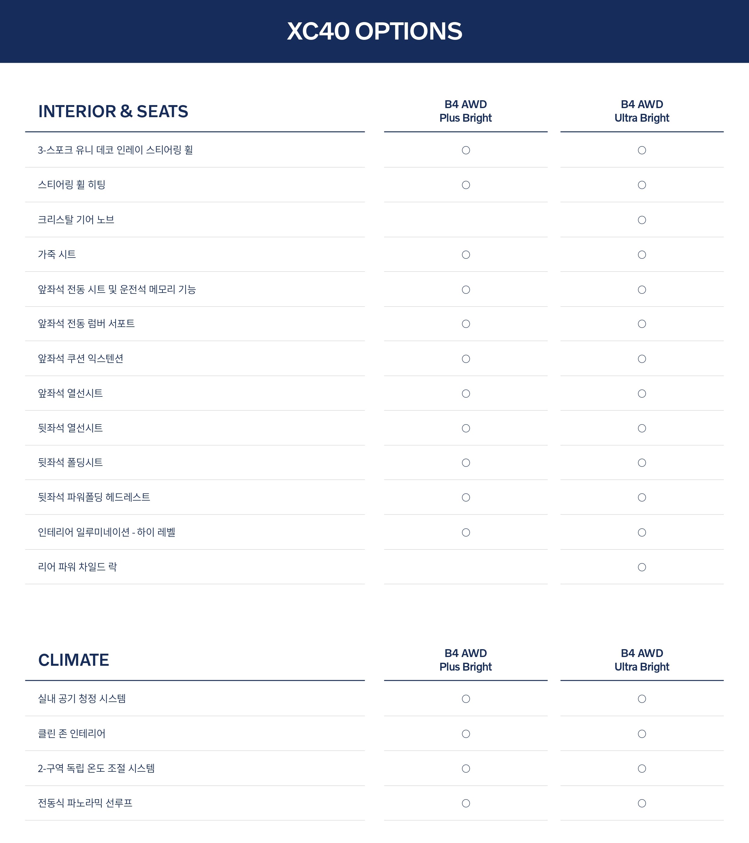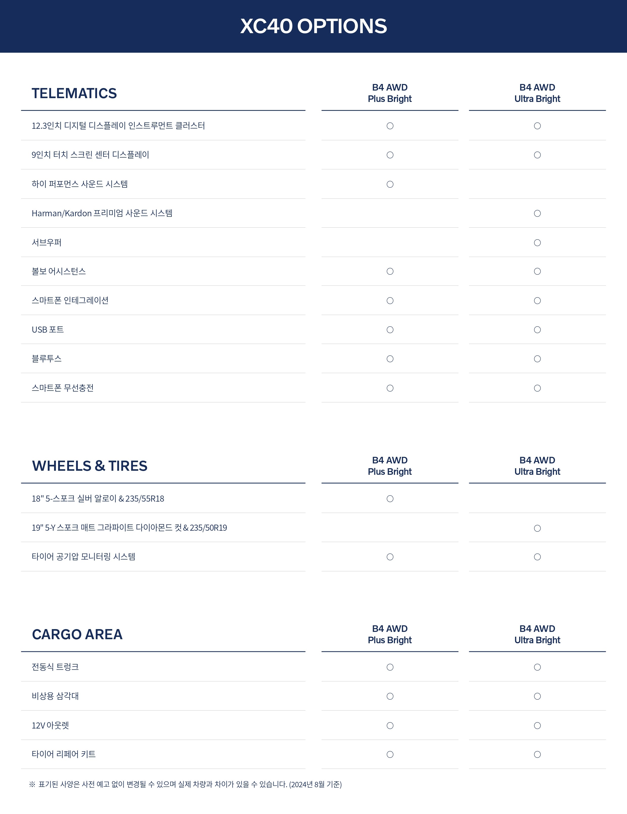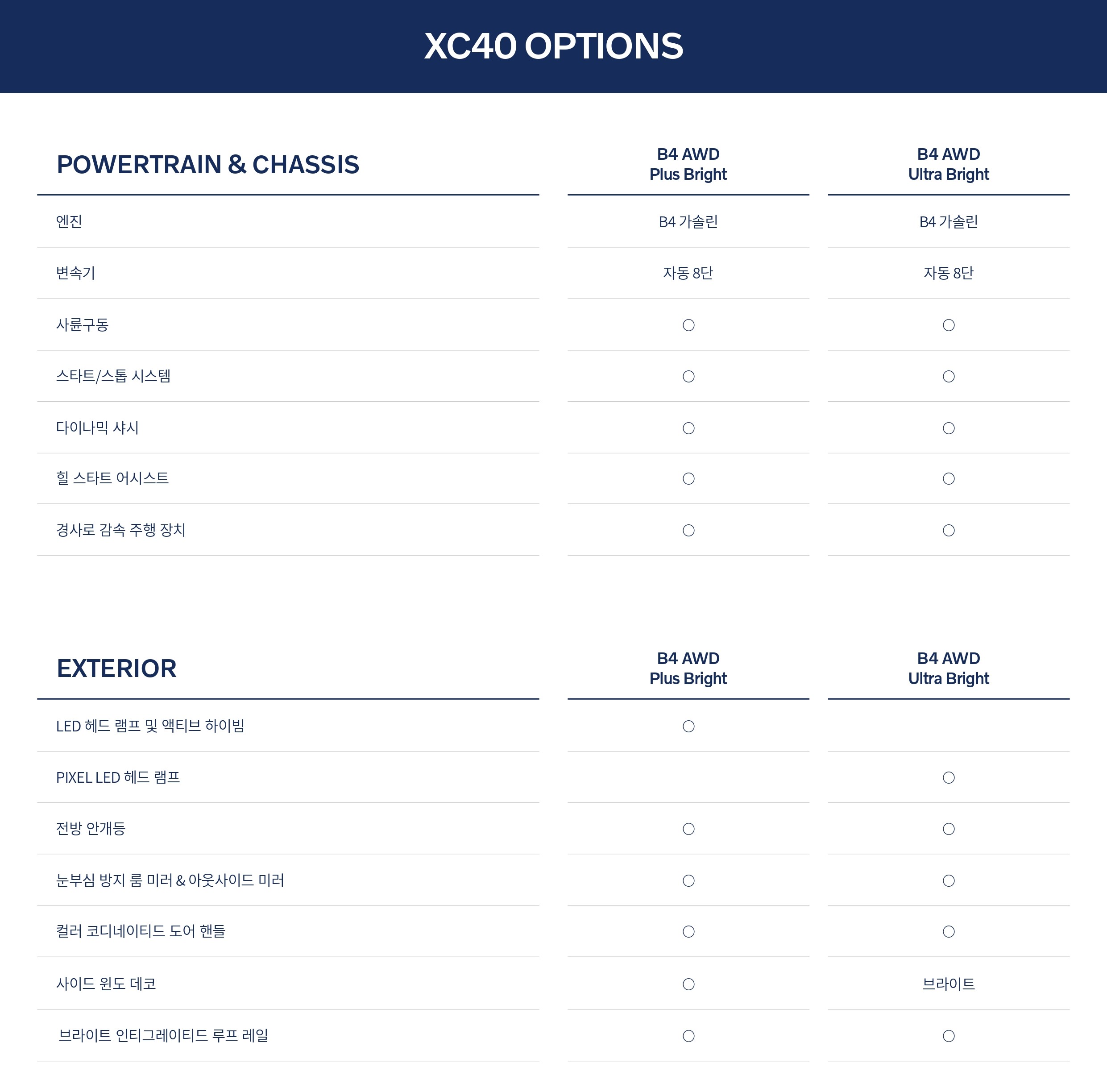 아래는 2025 볼보 XC40 옵션표 및 제원표 원본으로, 필요하신 분께서는 받아 가시기 바랍니다.
