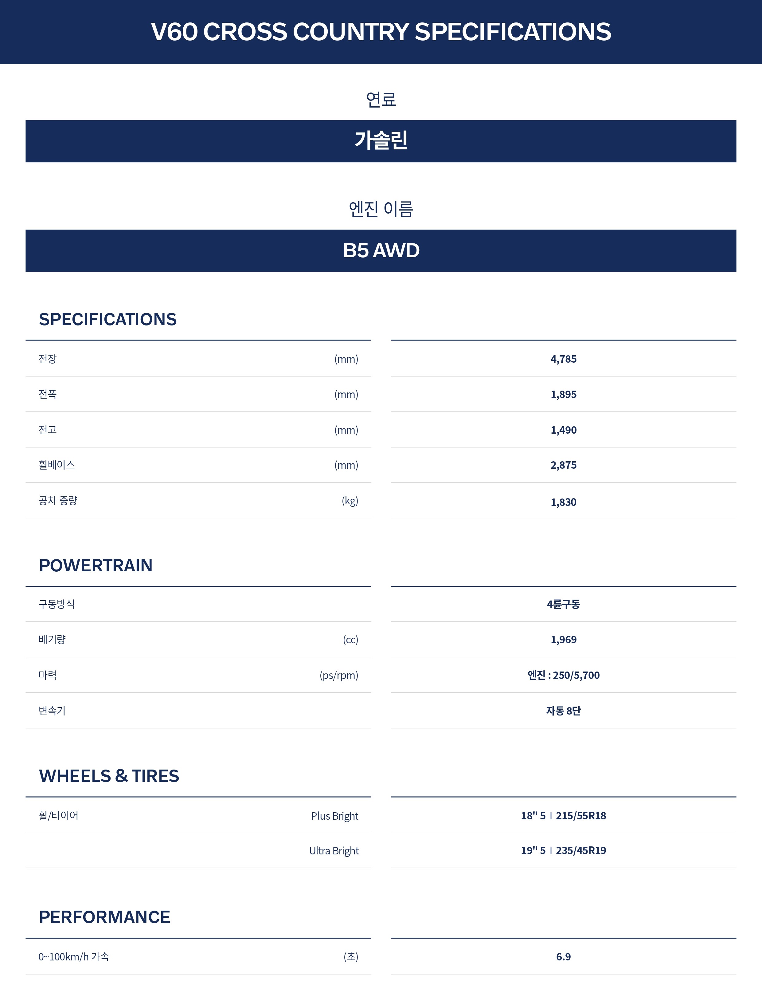 S60, XC60 모두 B5 파워트레인을 사용하는데, V60 에만 개선된 파워트레인을 안넣어준건지...
