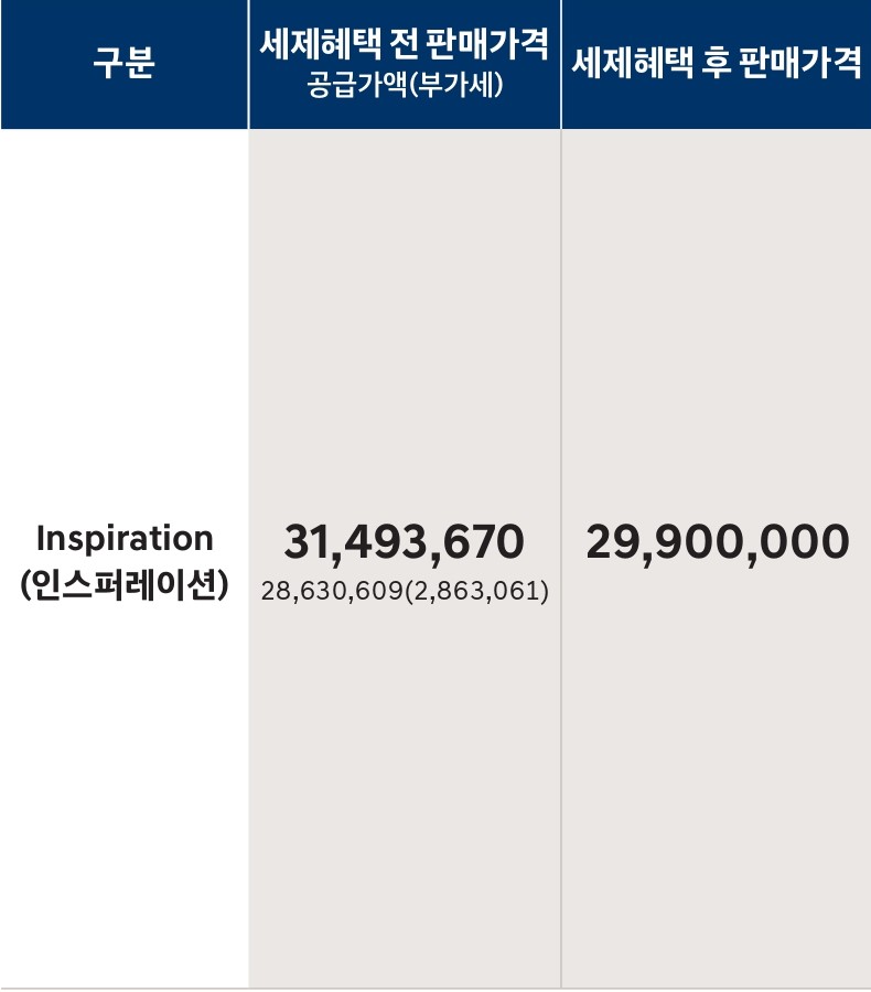 반면, 오늘 소개해 드리는 가격표는 세제혜택 후 판매 가격이 아래와 같이 명시가 되어 있습니다.