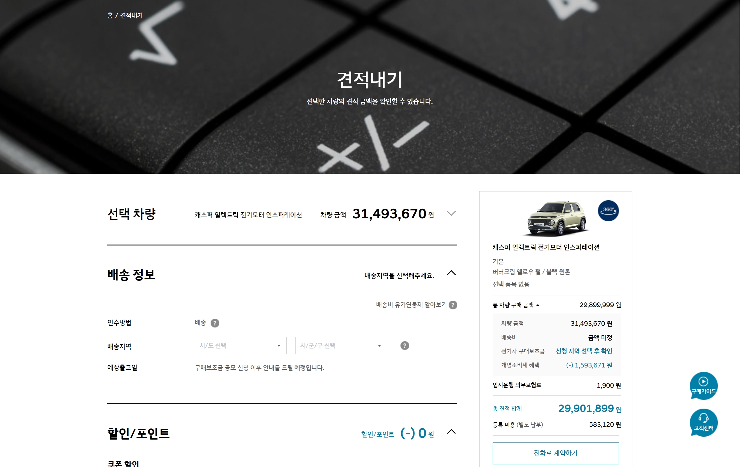 사전 계약용 이라고 적힌 가격표에는 세제혜택 전 판매 가격만 적혀 있었는데요!