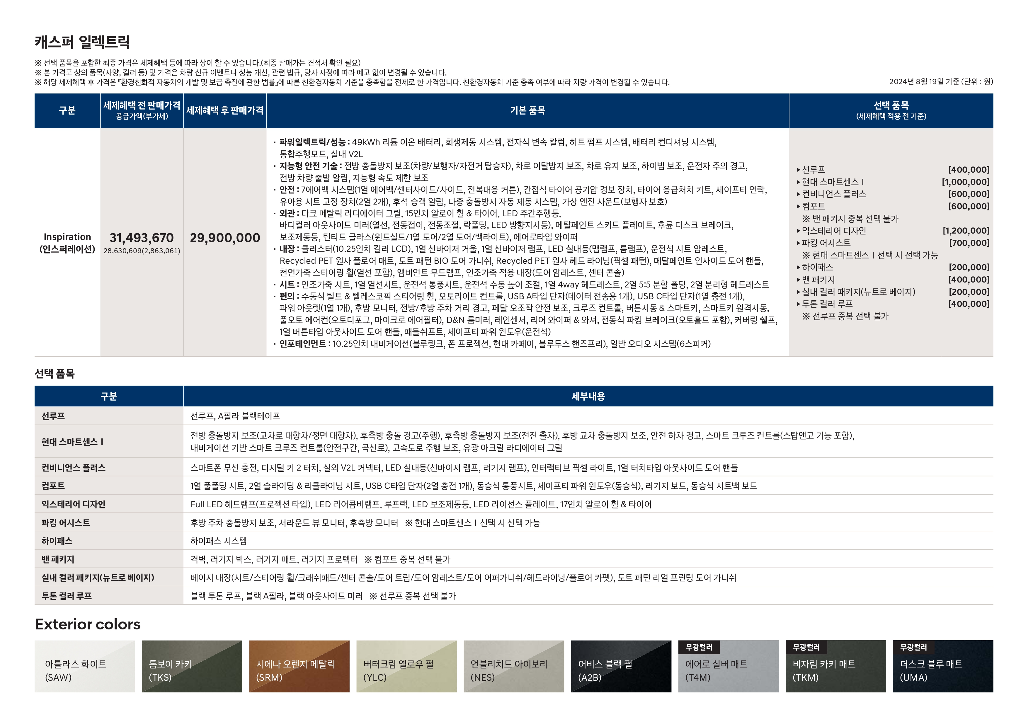 ▼ 2025 캐스퍼 일렉트릭 가격표 ▼