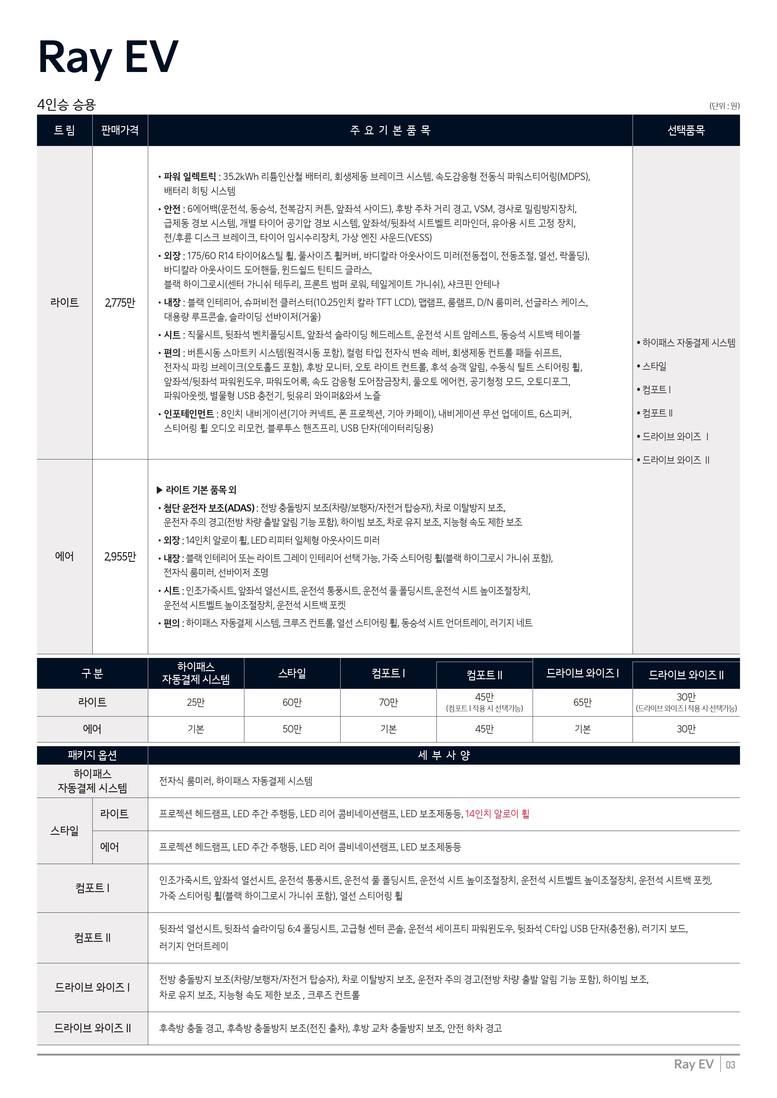 ▼ 2025 레이 EV 가격표 ▼