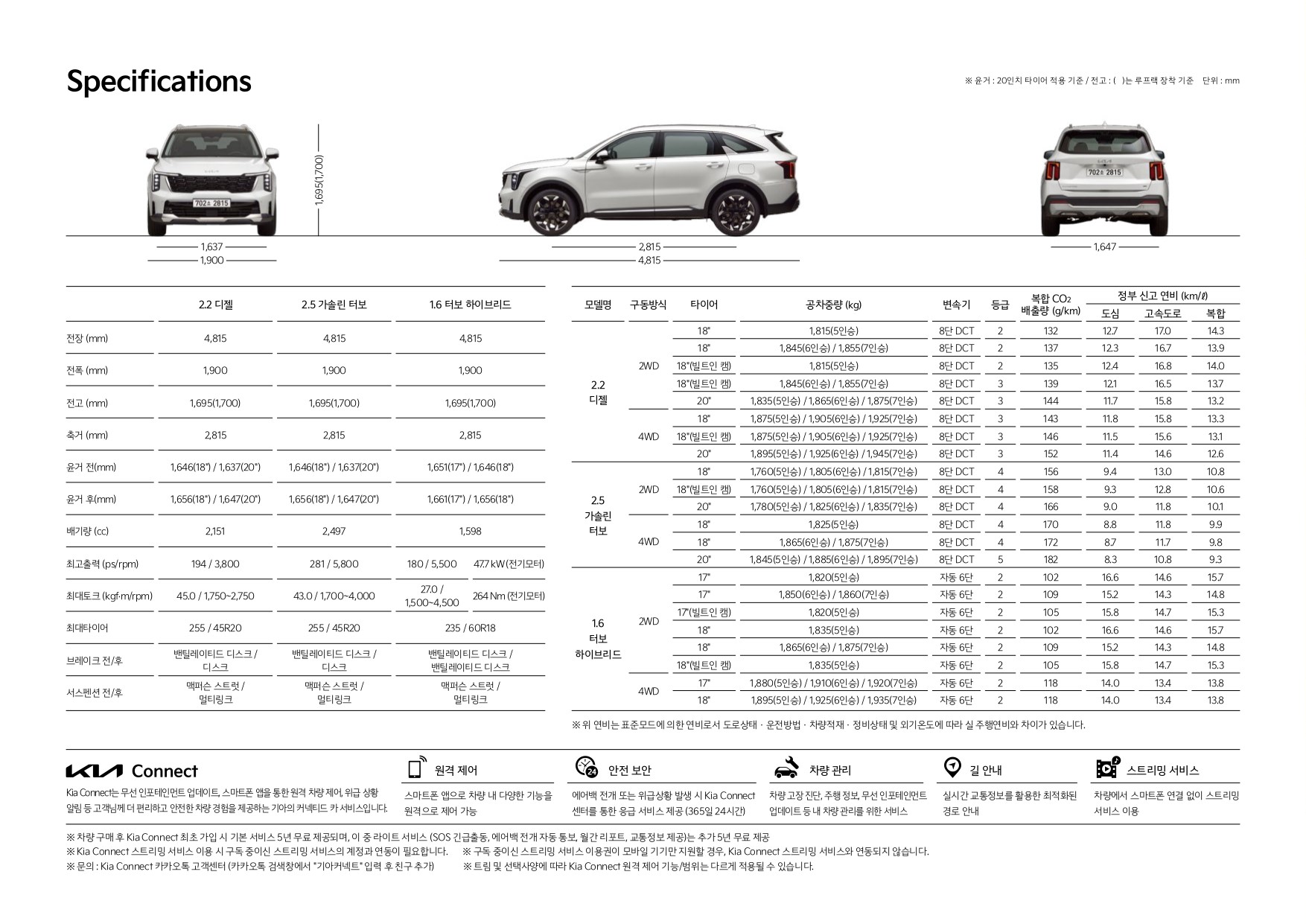 마지막으로 2025 쏘렌토 제원 입니다.