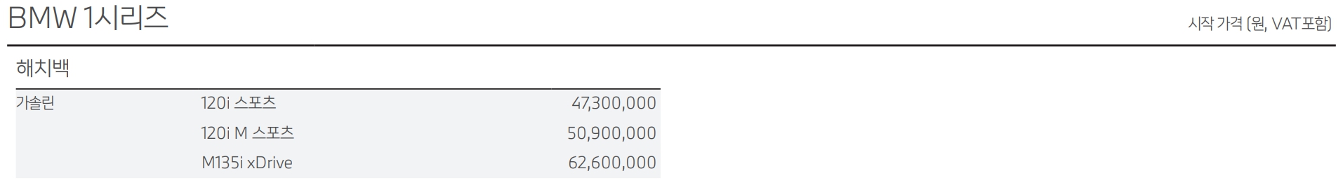 BMW 1시리즈 가격표