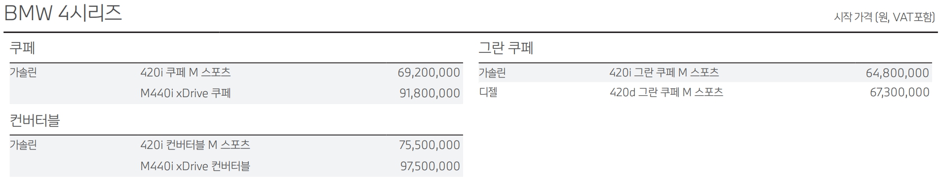 BMW 4시리즈 가격표