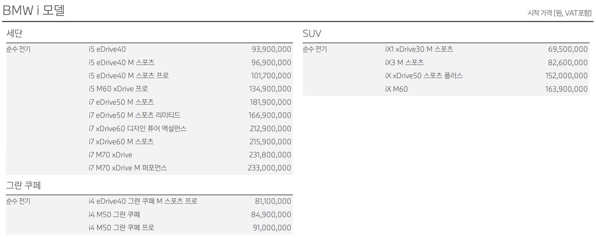 BMW 전기차 가격표