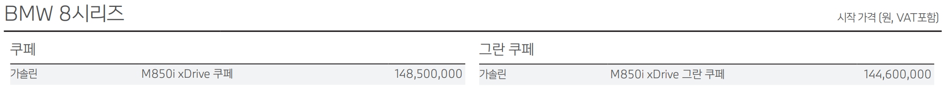 BMW 8시리즈 가격표