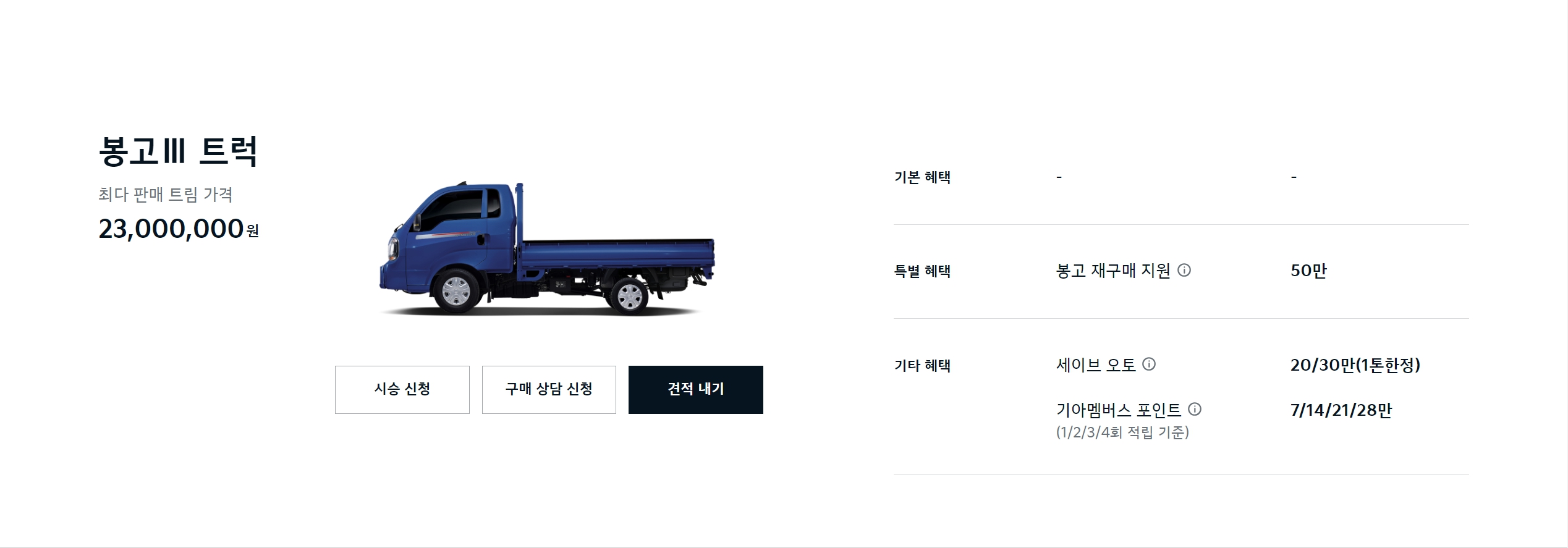 지난 달 봉고 3 프로모션을 확인을 못했는데, 아마도 없을 것으로 생각이 됩니다.
