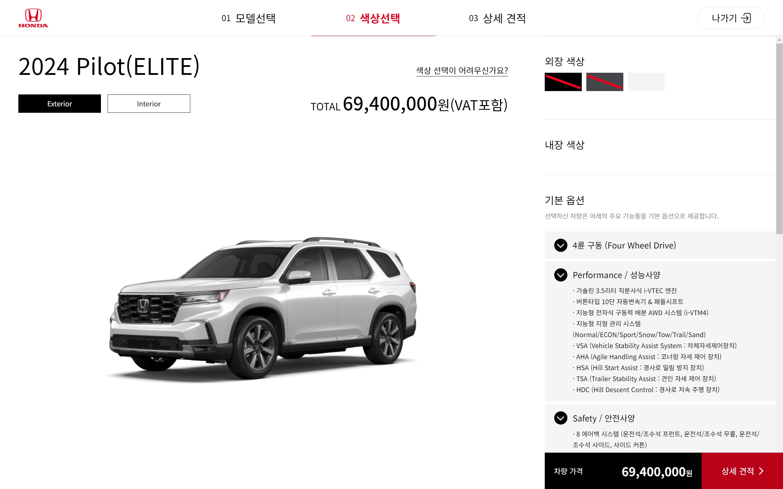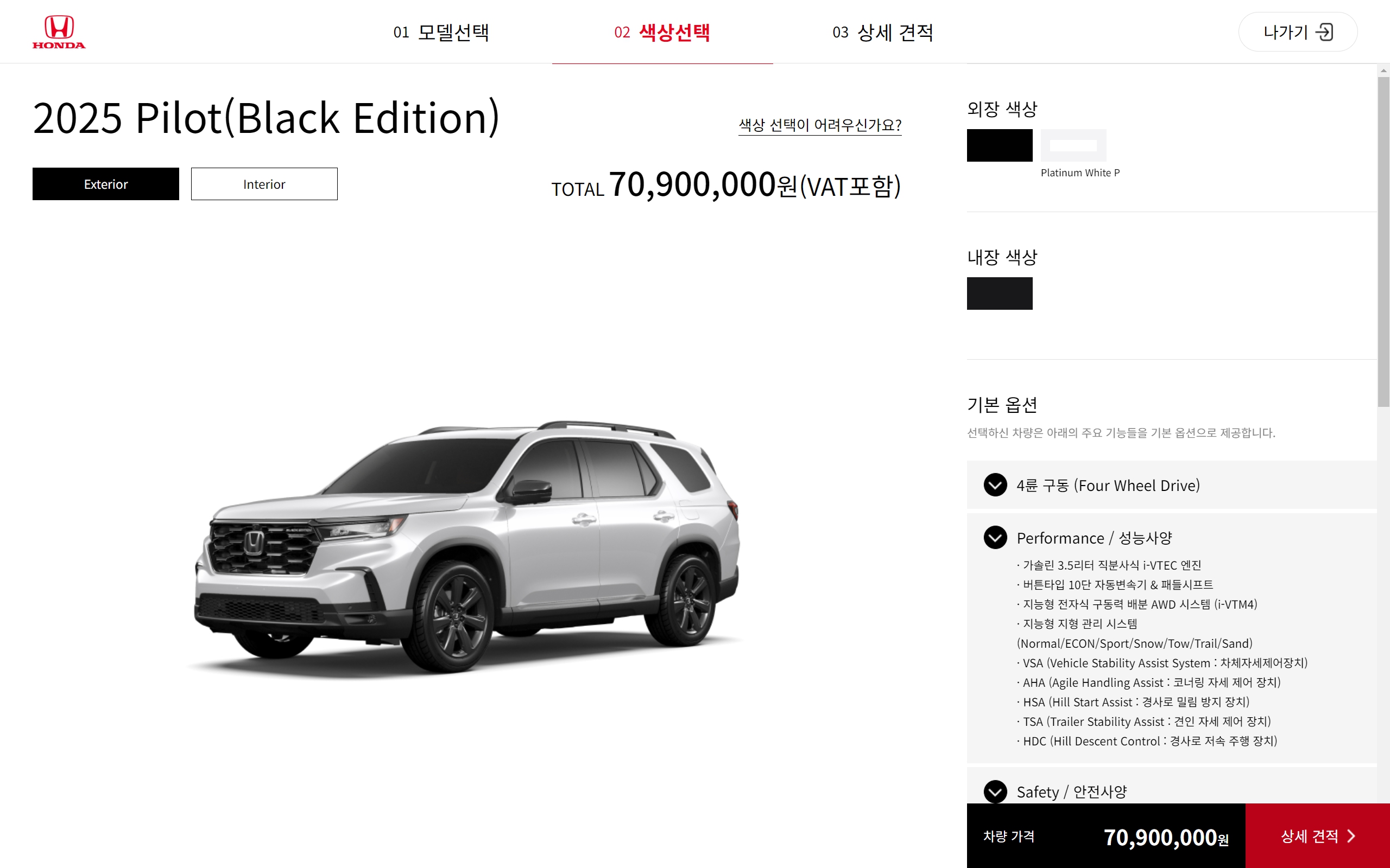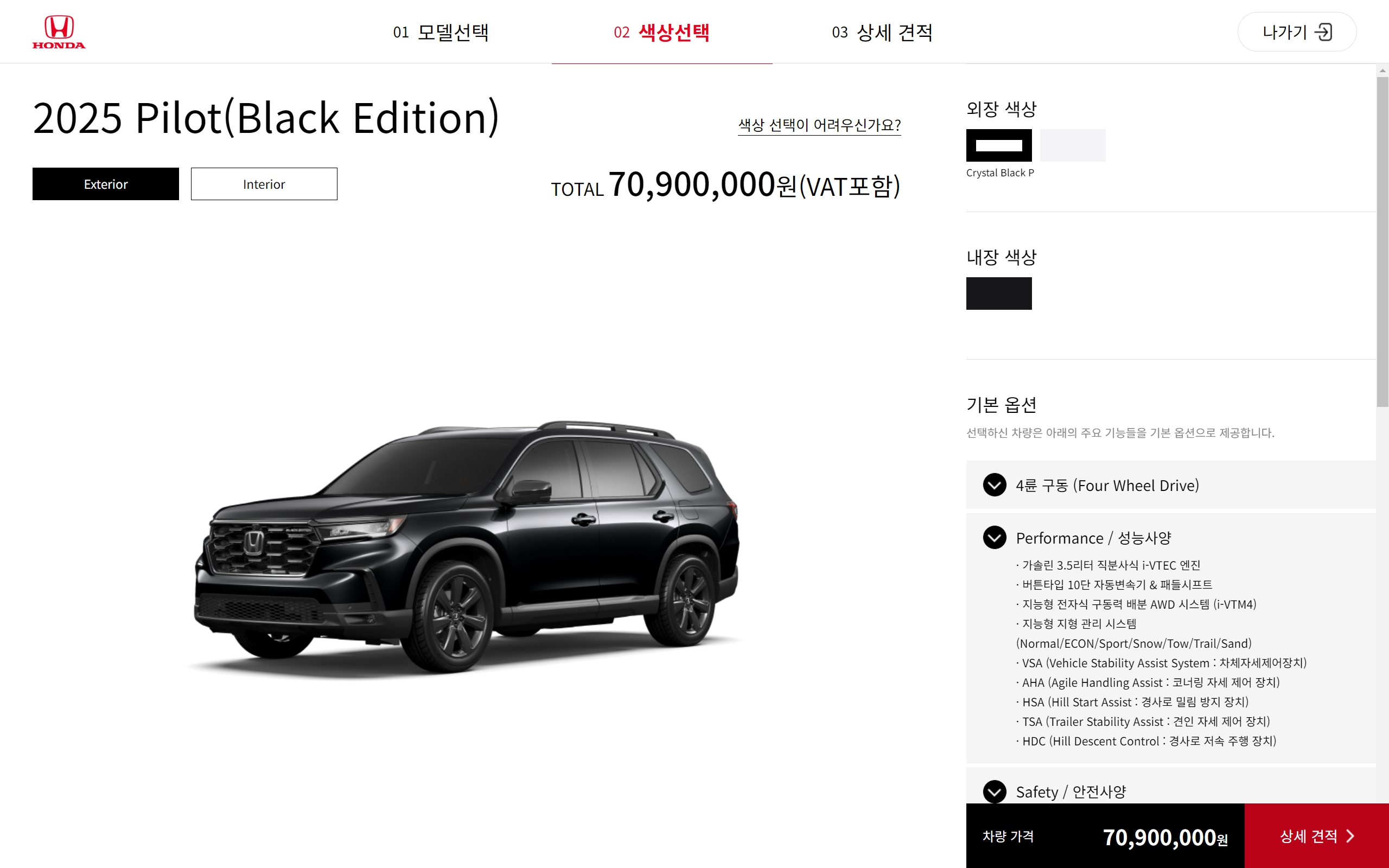 현재도 국내에서 판매되고 있는 파일럿 엘리트 트림에 내/외장에 블랙으로 포인트를 준 일종의 스페셜 에디션 정도로 봐주시면 됩니다.