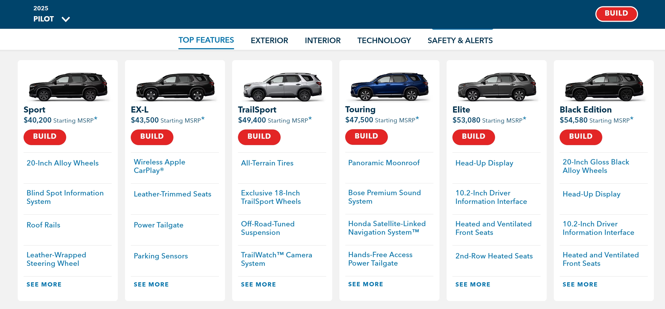 이해를 돕고자, 혼다 파일럿의 주력 판매 시장인 혼다 미국 홈페이지의 엘리트 소개 페이지 입니다.
