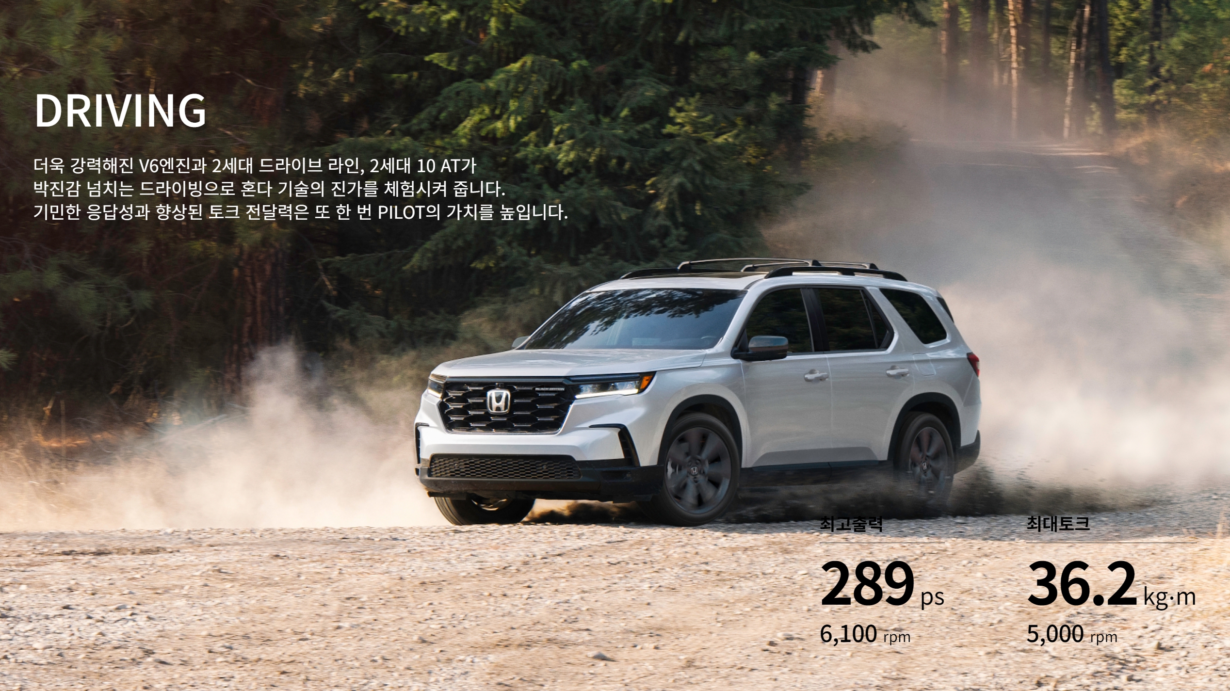 사실, 혼다 파일럿이 우리나라는 물론이고, 북미에서조차 V6 3.5 자연흡기 엔진 1개만 탑재가 됩니다.