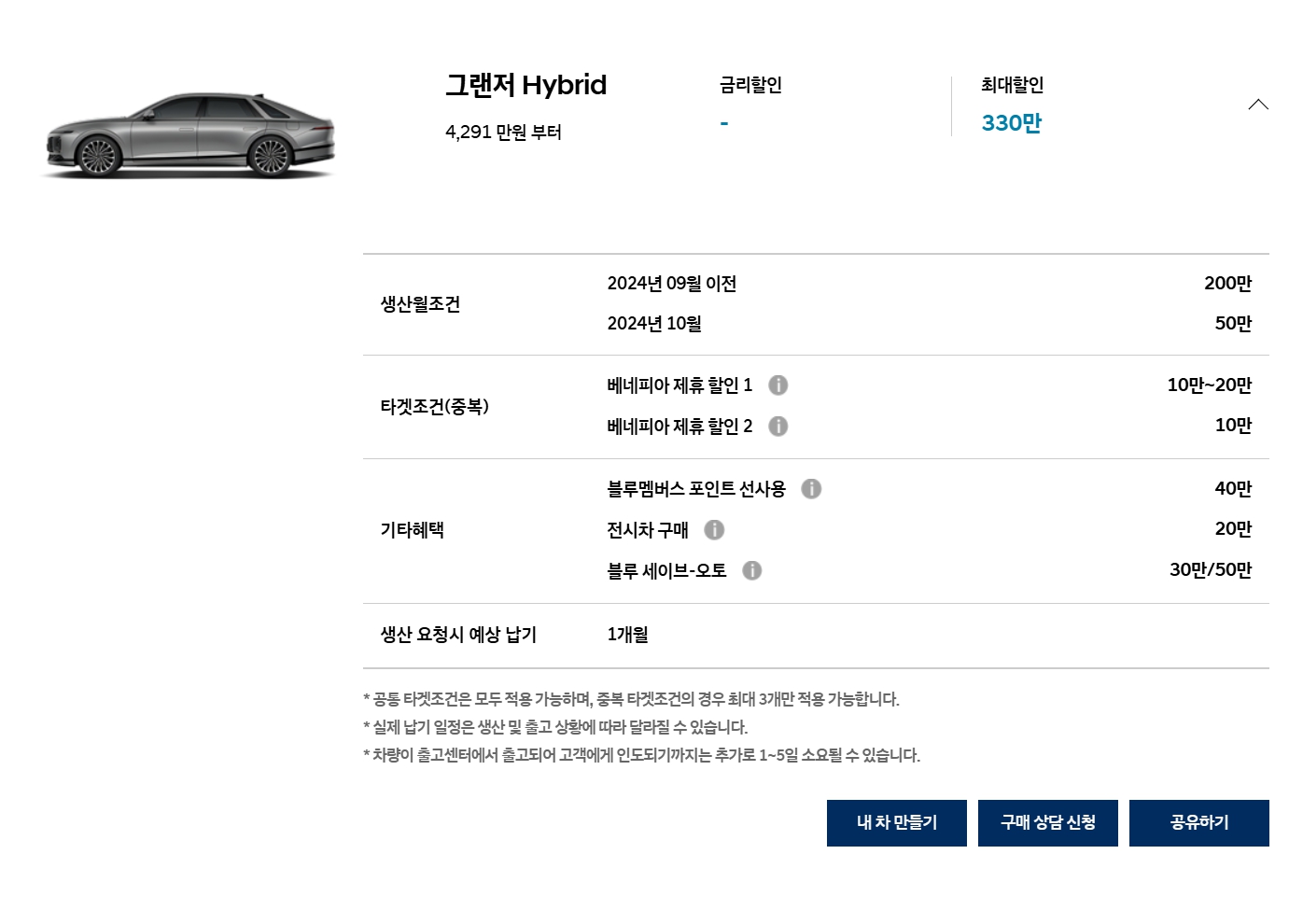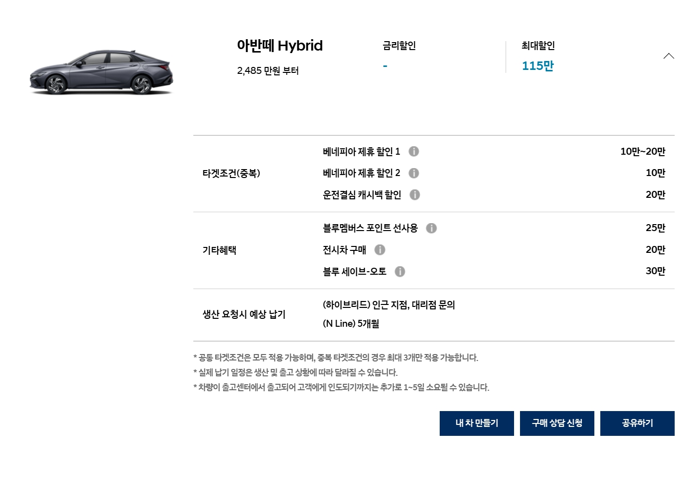 단, 하이브리드 모델은 세일페스타 20만원은 적용이 안되니, 참고 부탁드립니다.
