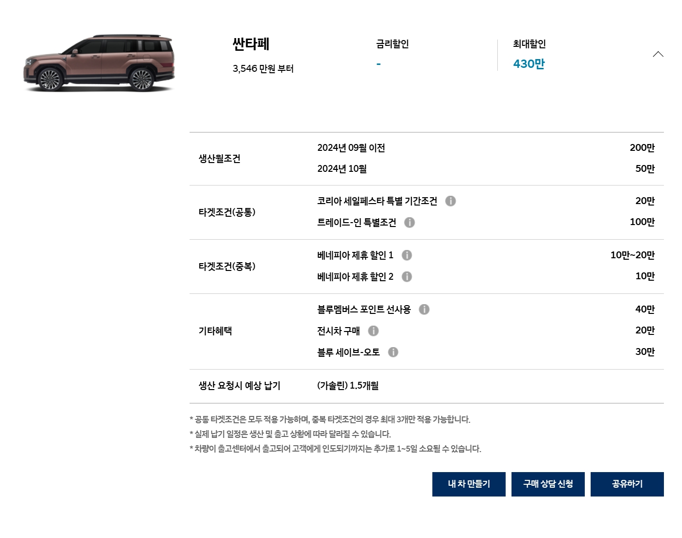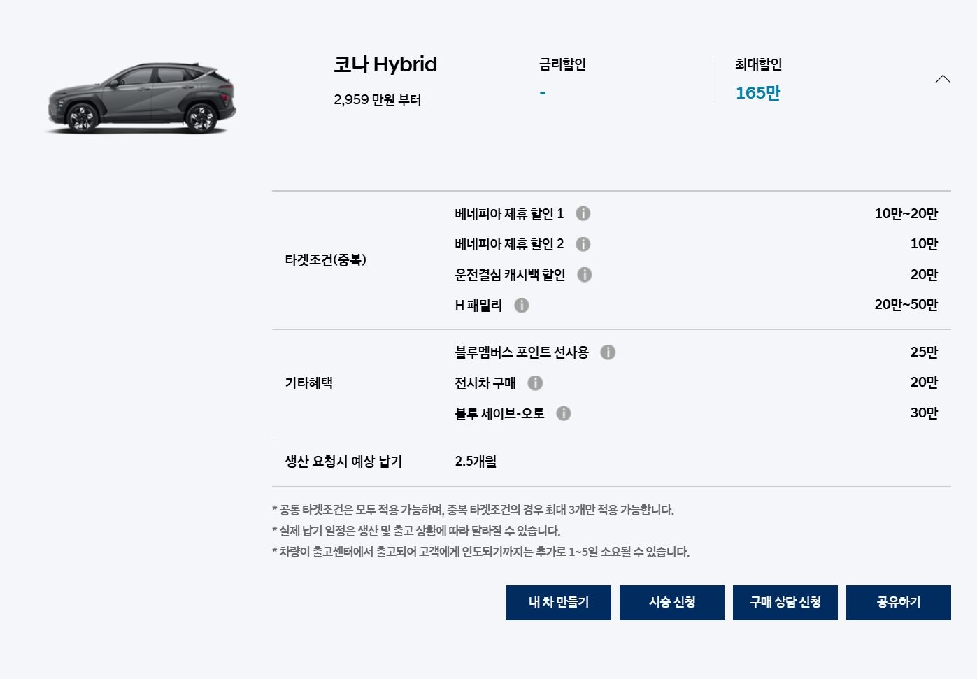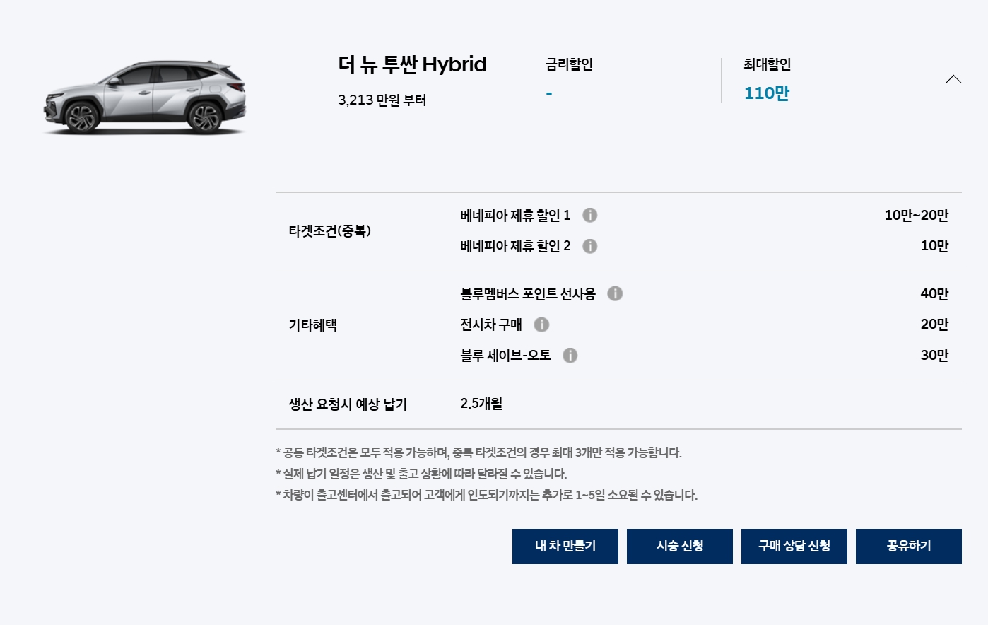 다만, 하이브리드 모델인 경우에는 재고할인만 있고, 세일페스타나 트레이드인은 적용이 안됩니다.