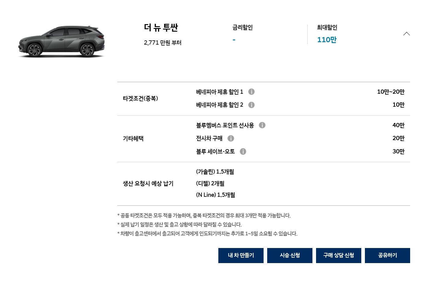 투싼이나 스포티지 같은 인기 모델은 그냥 프로모션 기대하지 마시고, 필요하실 때 사시면 됩니다.
