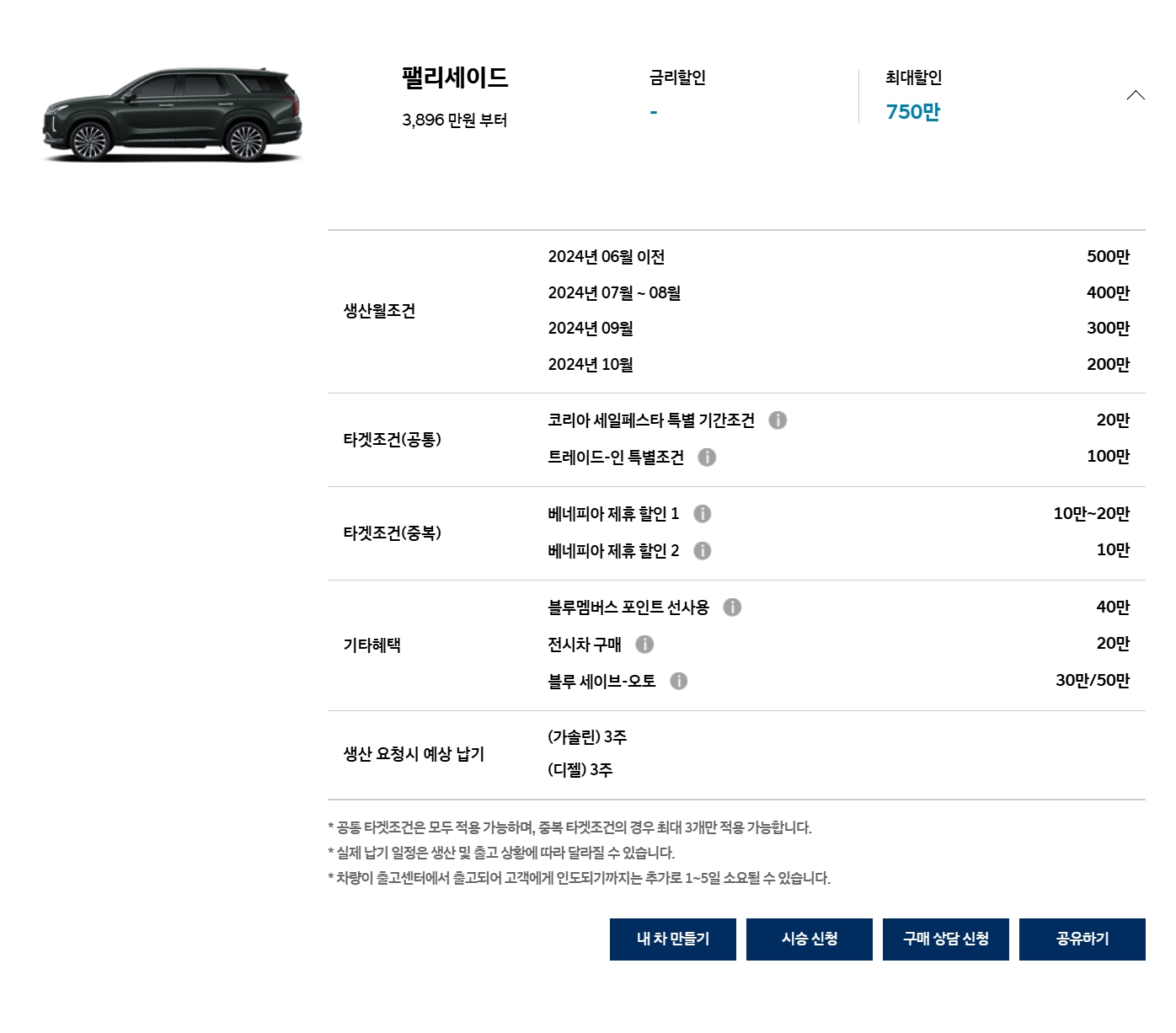 항상 할인이 없는 차종이기에, 페스타를 하는 이번달 조차도, 지난달과 동일하게 할인이 없습니다.