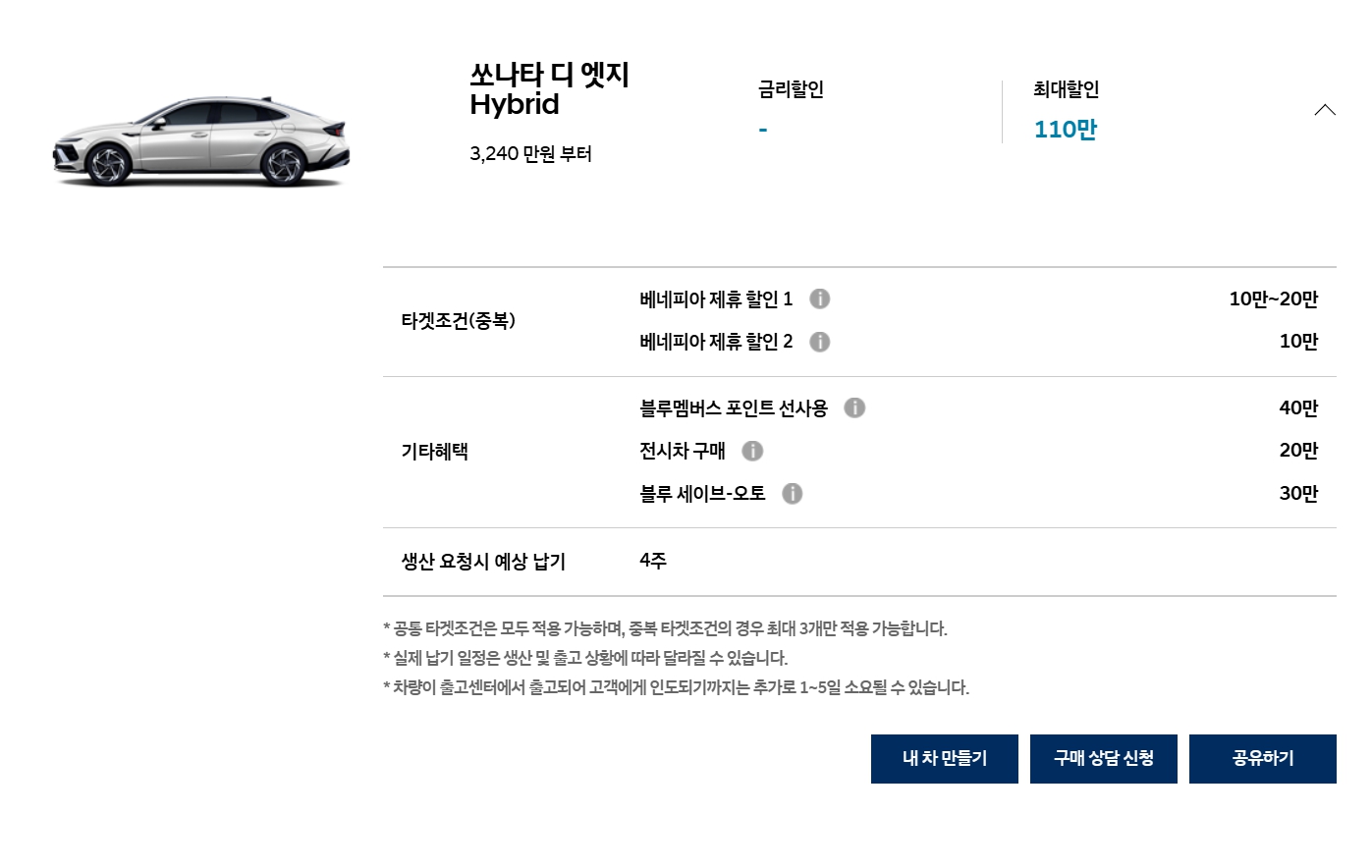 심지어, 하이브리드 모델은 얼마 안 되는 세일페스타 조건조차 없으니, 일단 쏘나타 사기에는 최악의 달이니, 무조건 패스하시기 바랍니다.