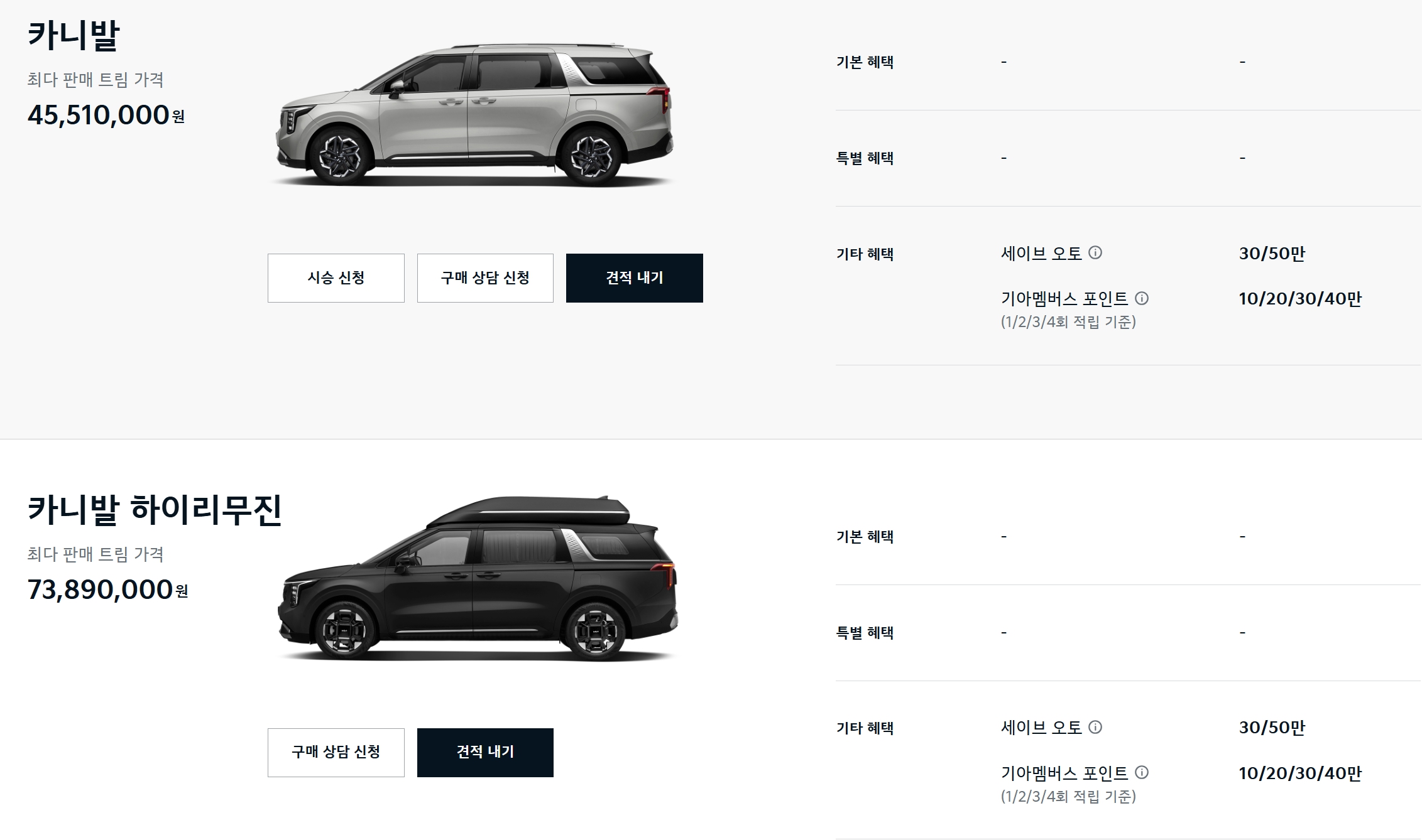 카니발 또한 25년형이 출시가 되어서, 실제 구매 가격은 인상되었다고 보시면 됩니다.