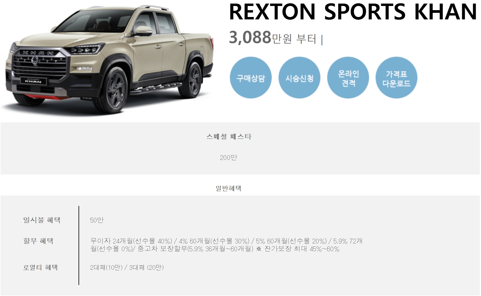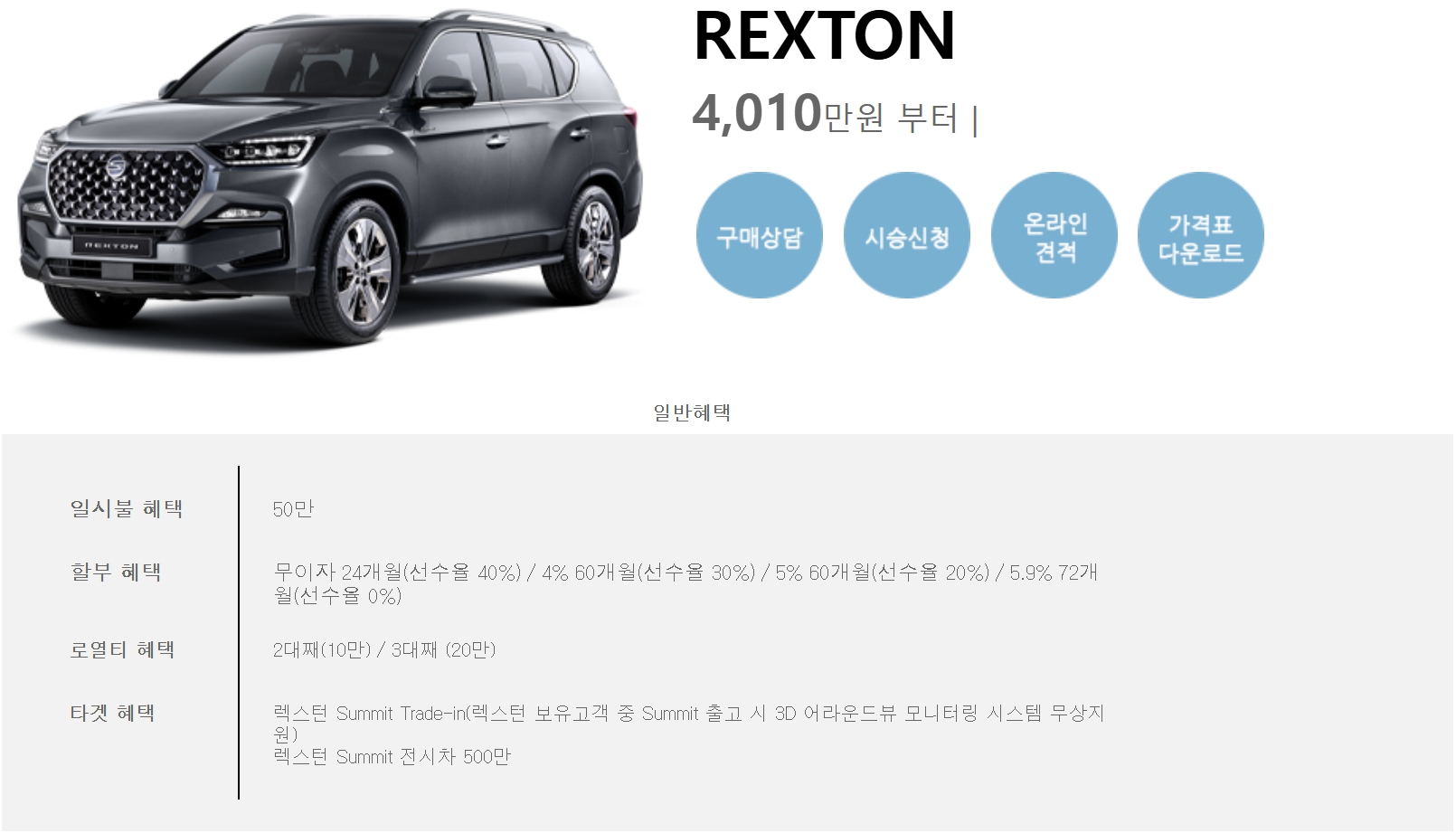 사실, 이렇게 되면 50만원 할인받고 렉스턴을 사야 하는데, 렉스턴 차량 가격을 감안하면 상당히 적은 수준의 할인 금액입니다.