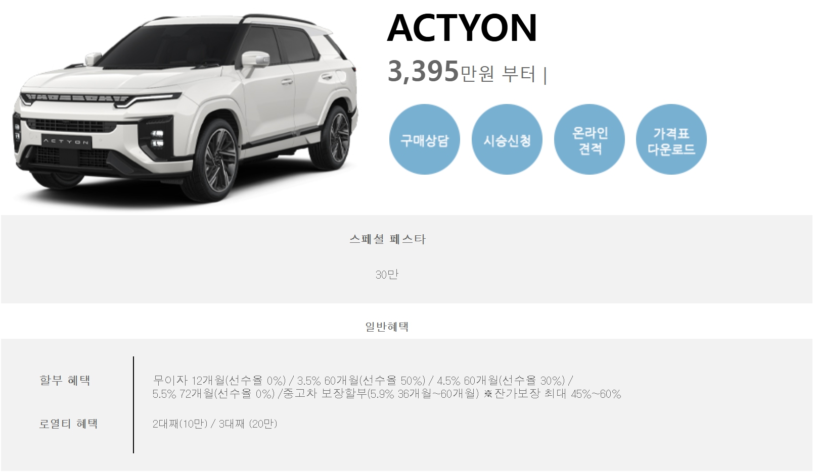 여태껏 한 번도 할인을 한 적이 없던 액티언이 작은 금액이긴 하나, 30만원 할인이 생겼습니다.