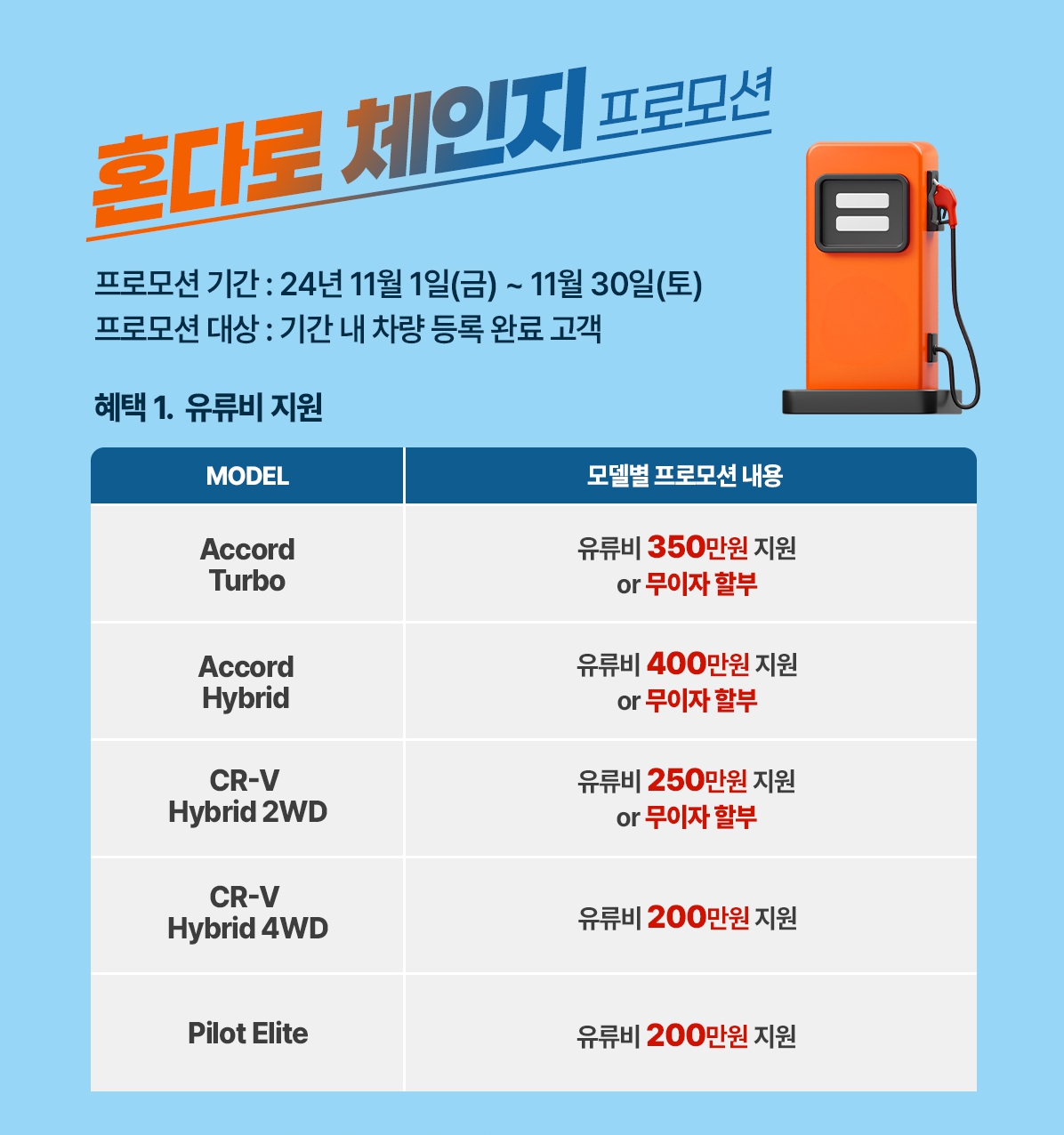 오늘은 여러분들께 2024년 11월 혼다 자동차 전차종 가격표 및 프로모션을 공유드려볼까 합니다.