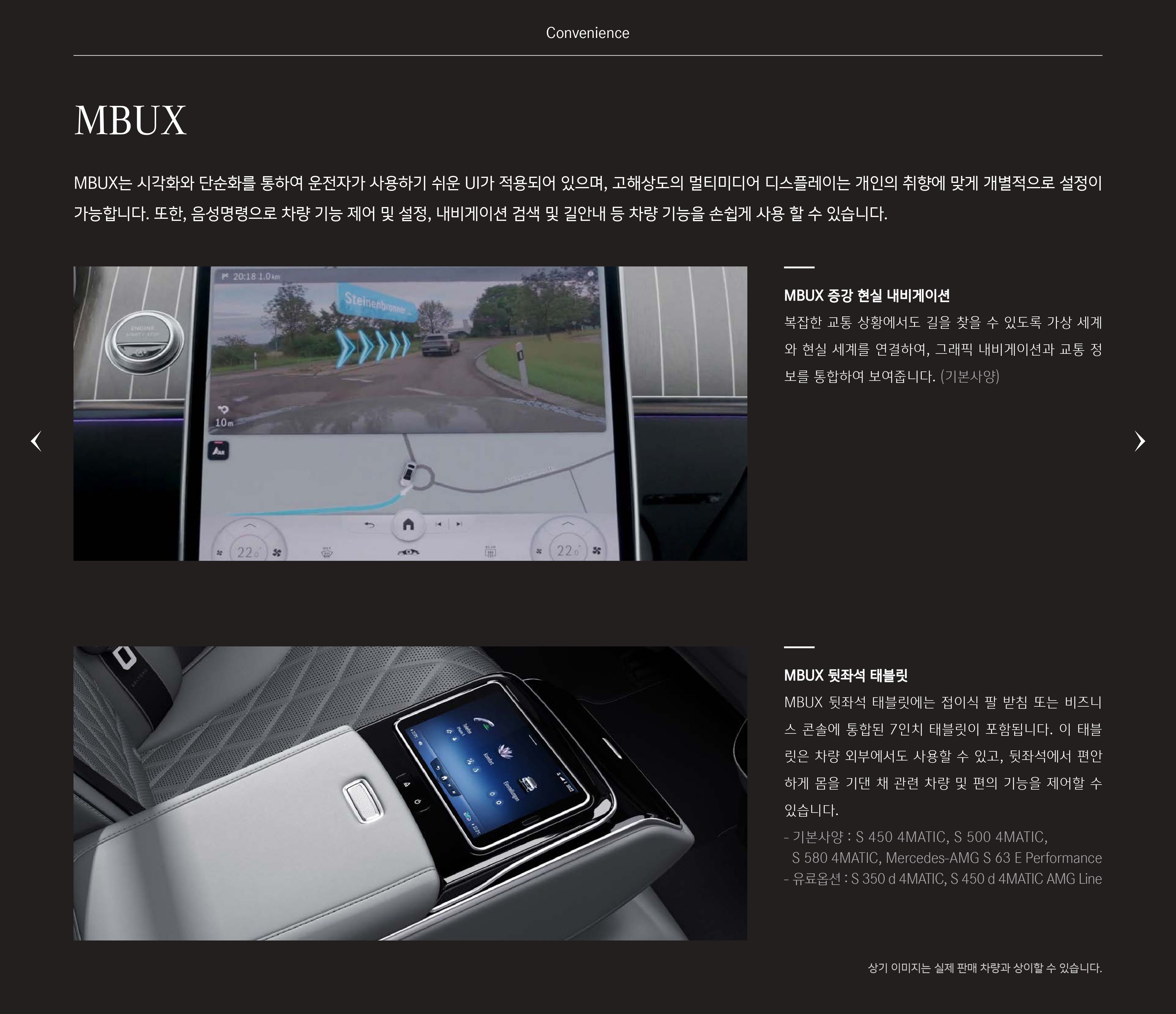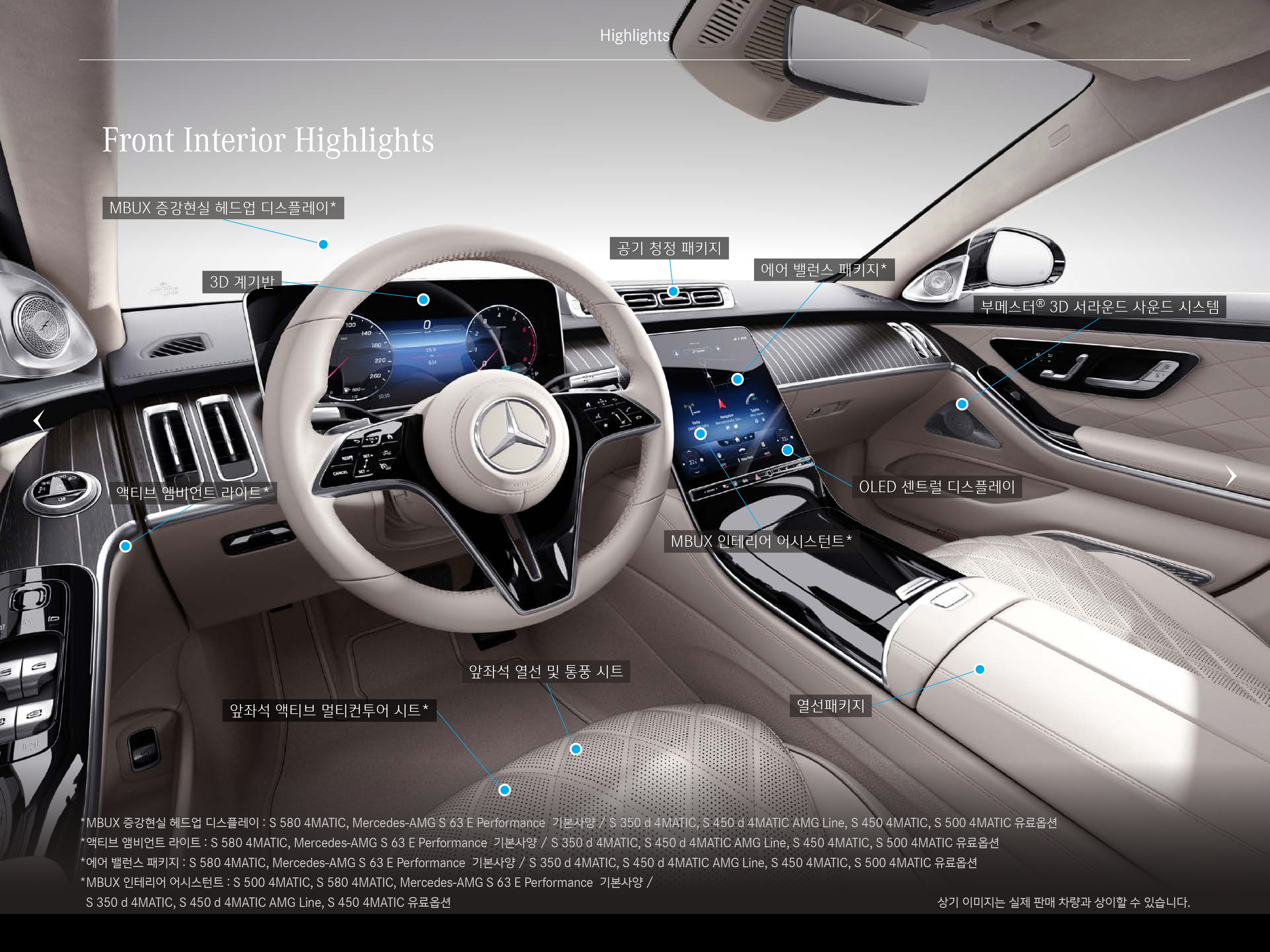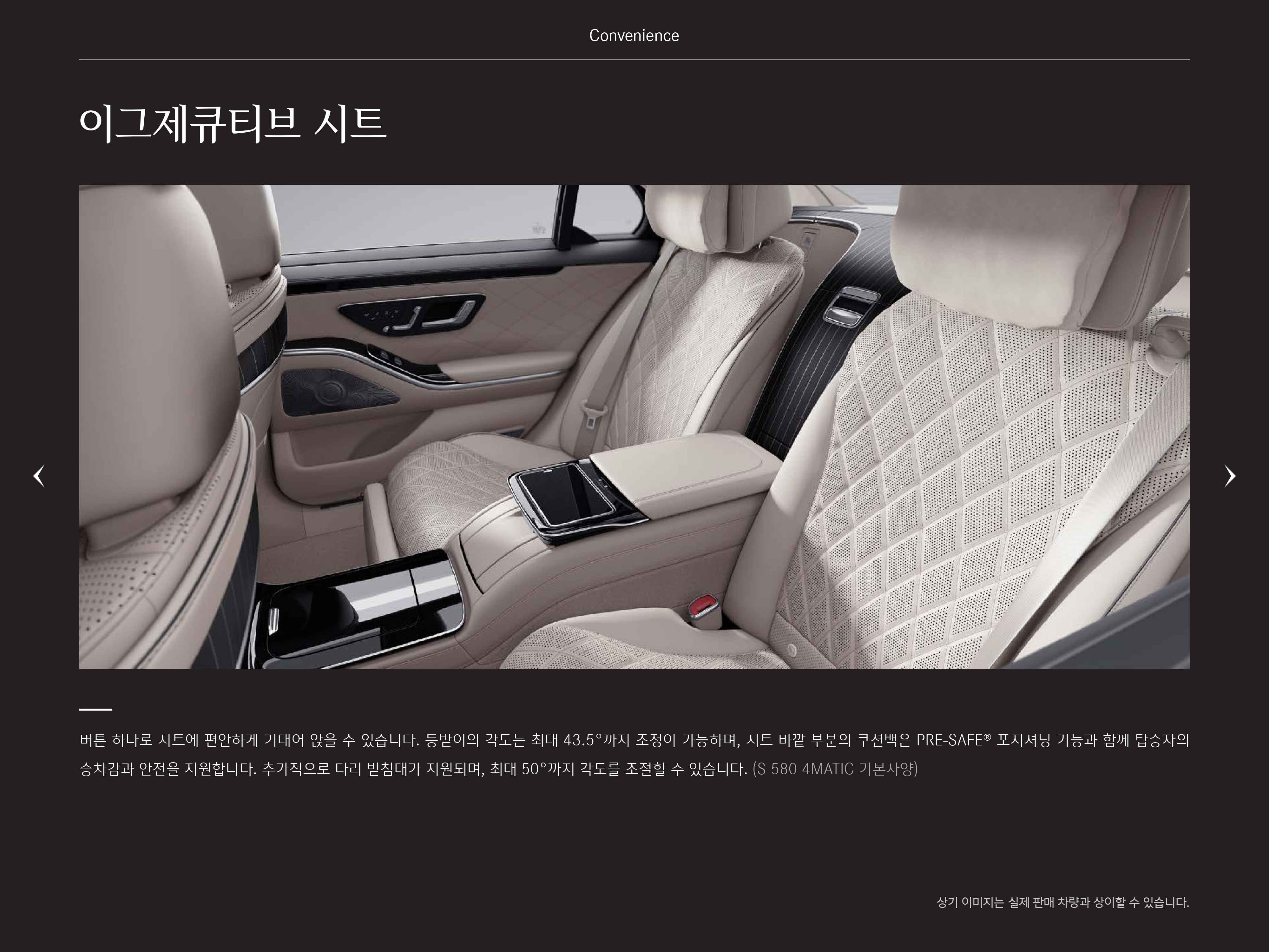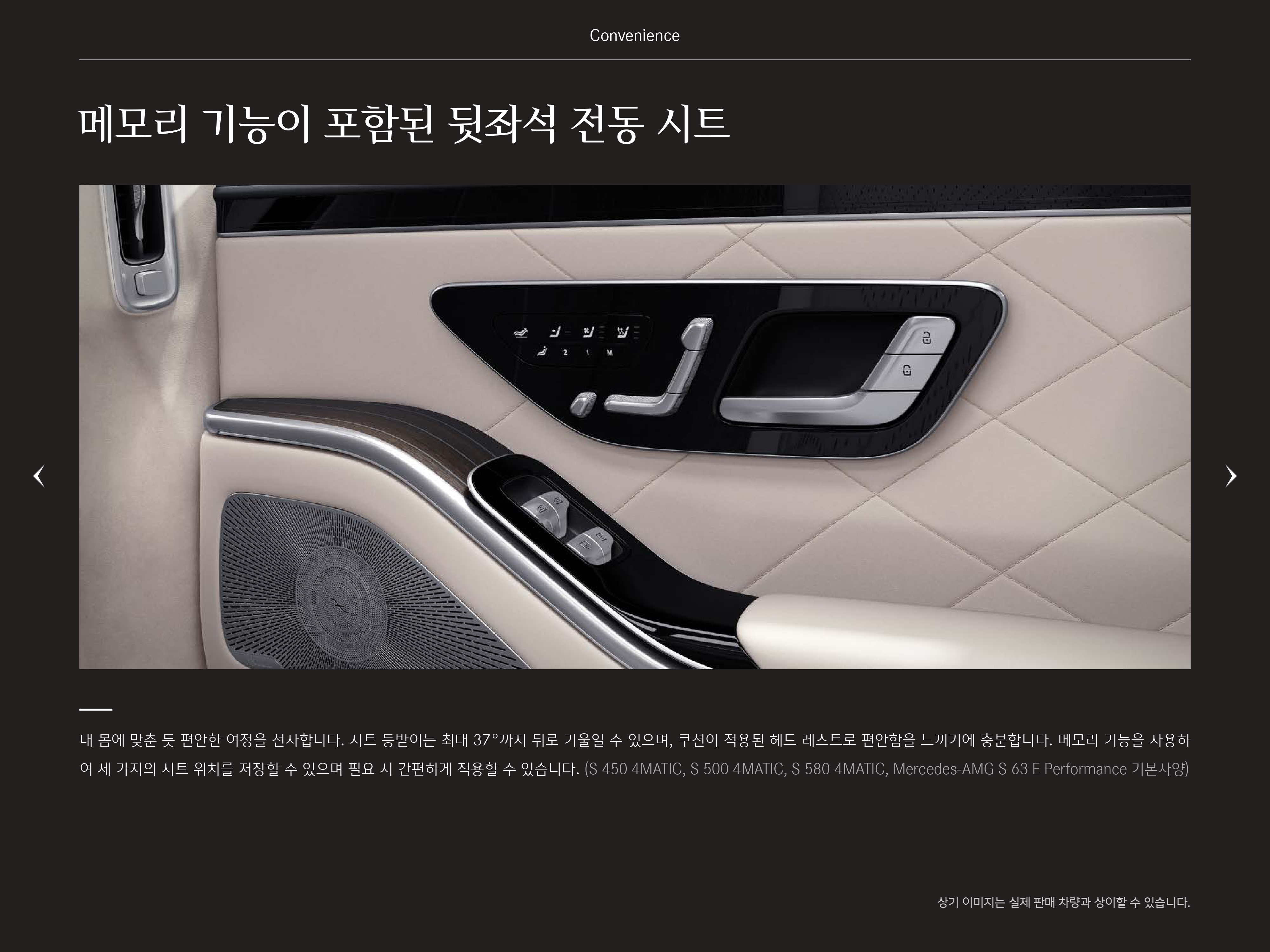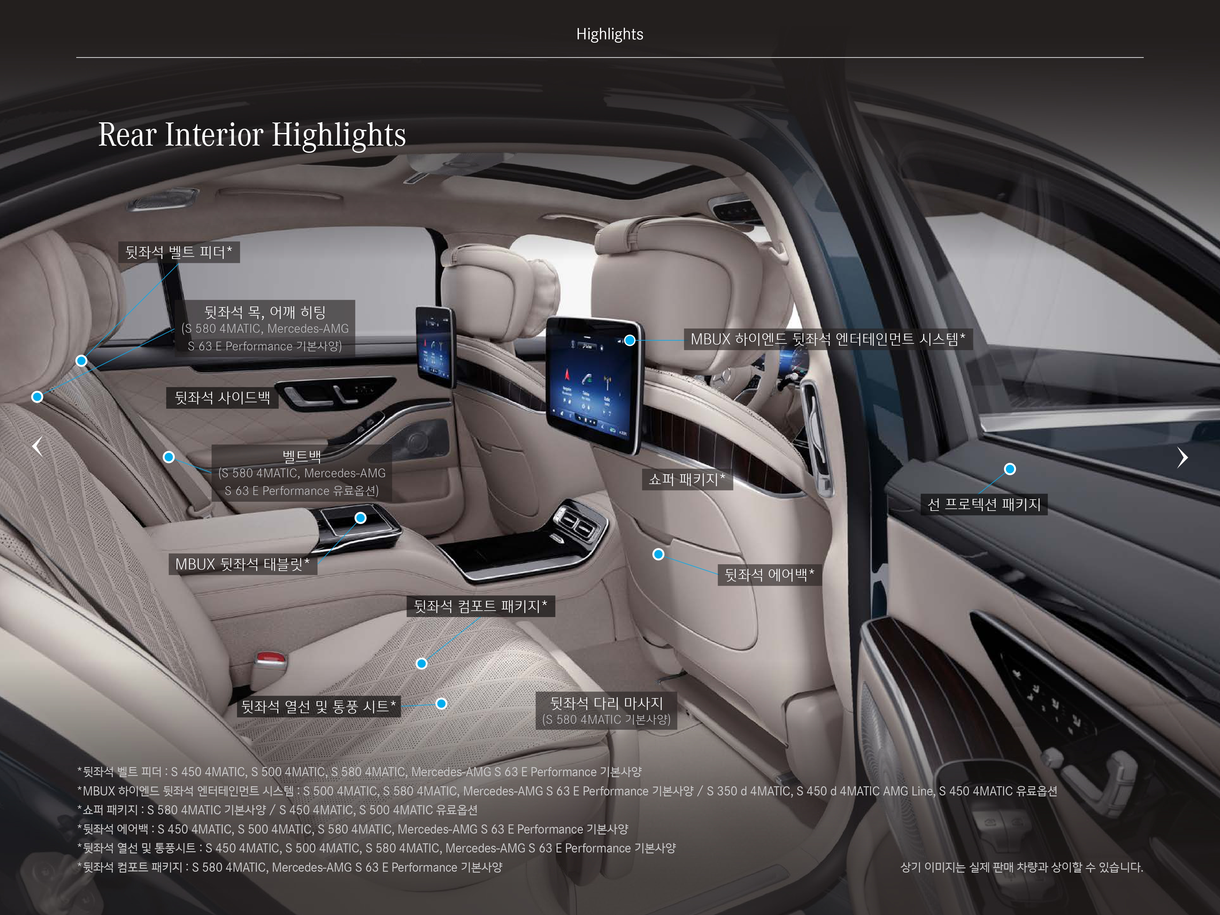 나아가서 본격적인 뒷좌석 옵션을 누리기 위해서는 최소 S500, S580 을 구매하셔야 합니다.