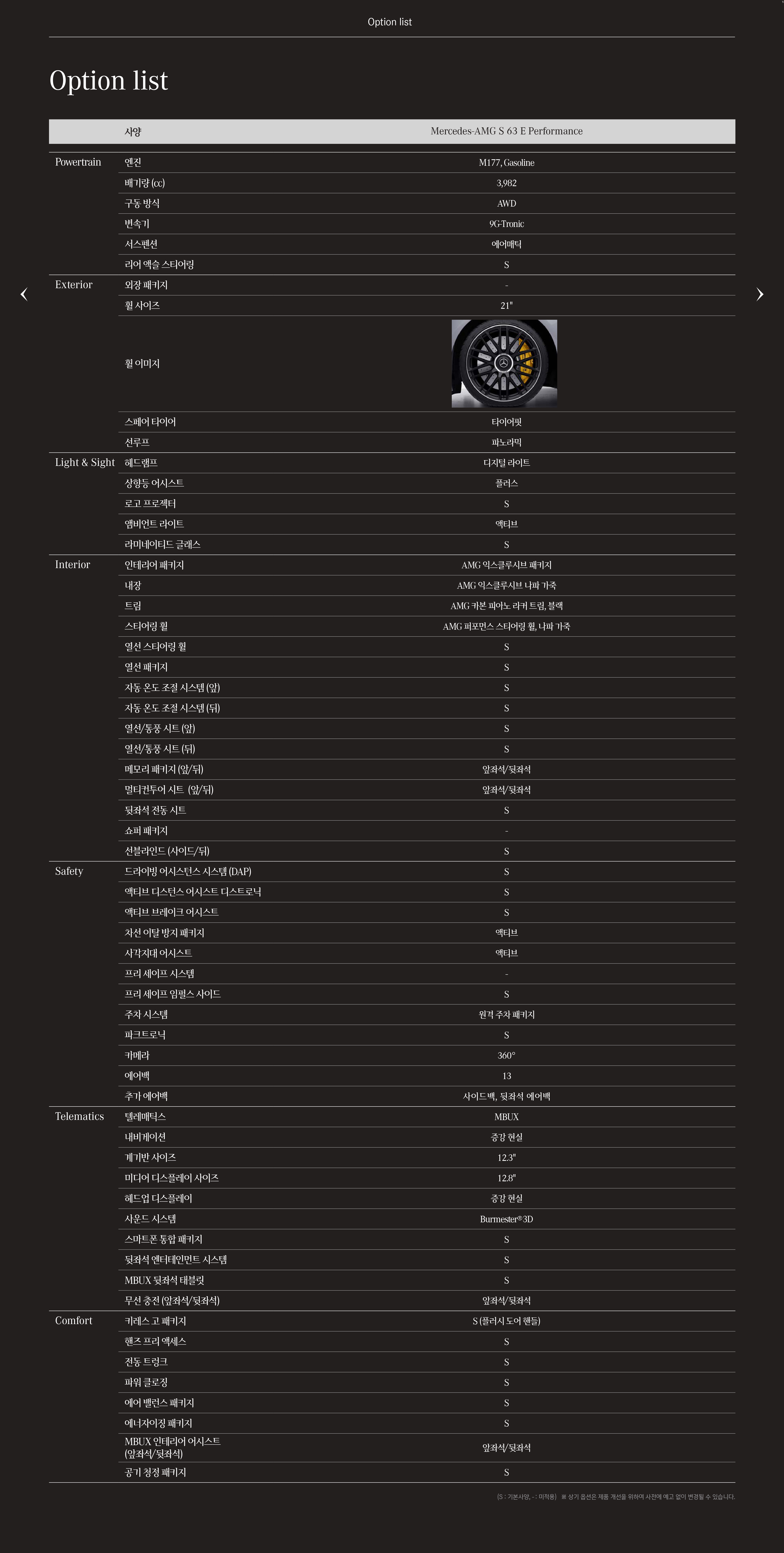 아래는 24년형이긴 하지만, S63 옵션표 입니다.