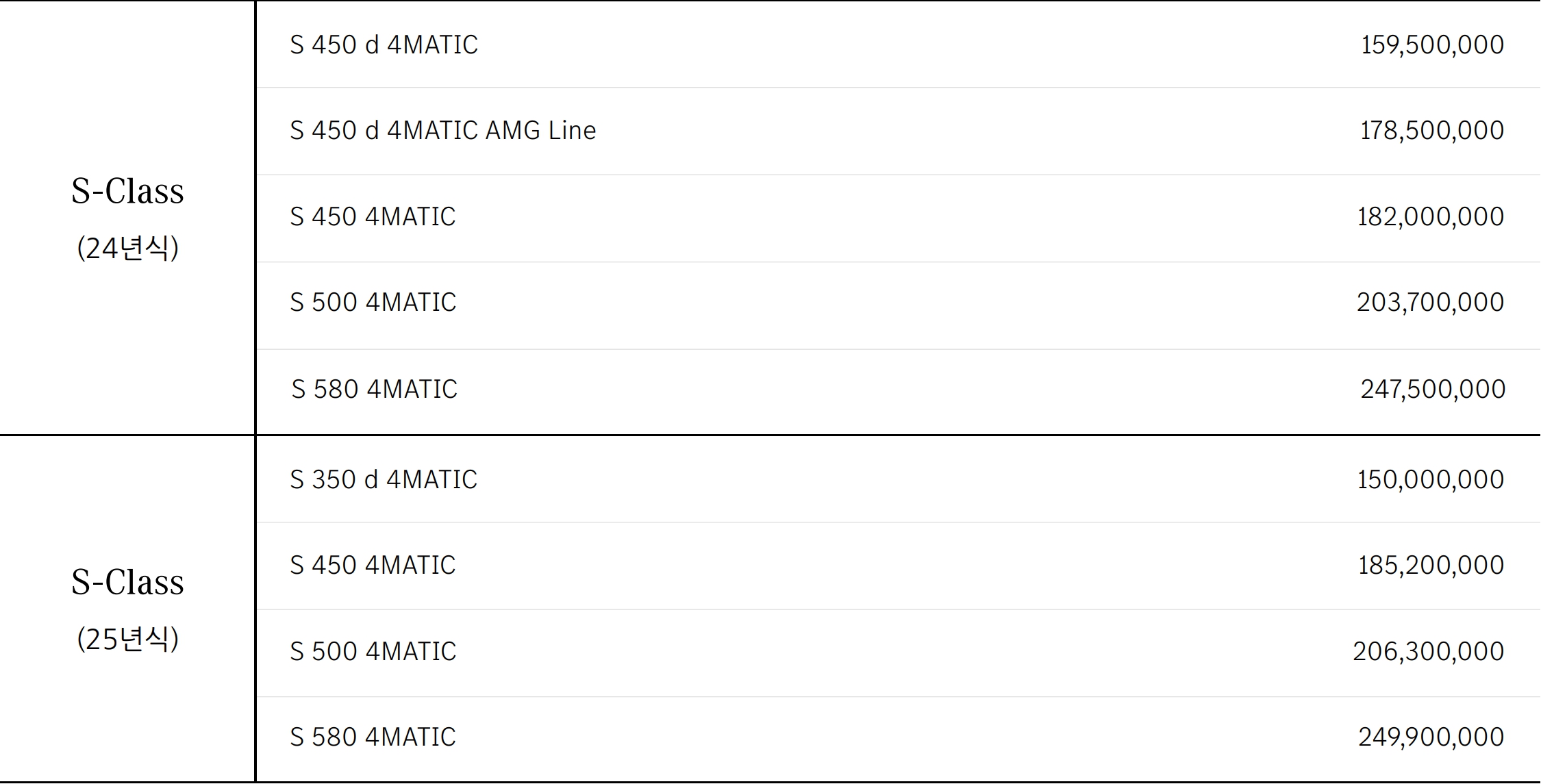 2025 S500 : 2억 630만원