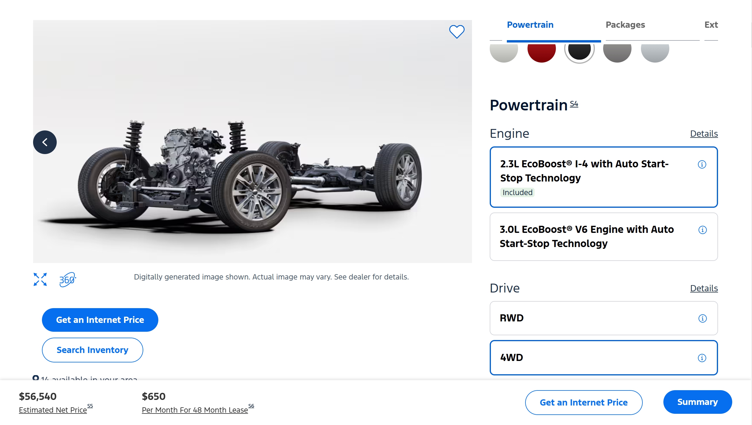 북미 사양의 플래티넘 역시 후륜구동이 기본이기 때문에, 4륜만 넣어도 56,540$ 이 되어버립니다.