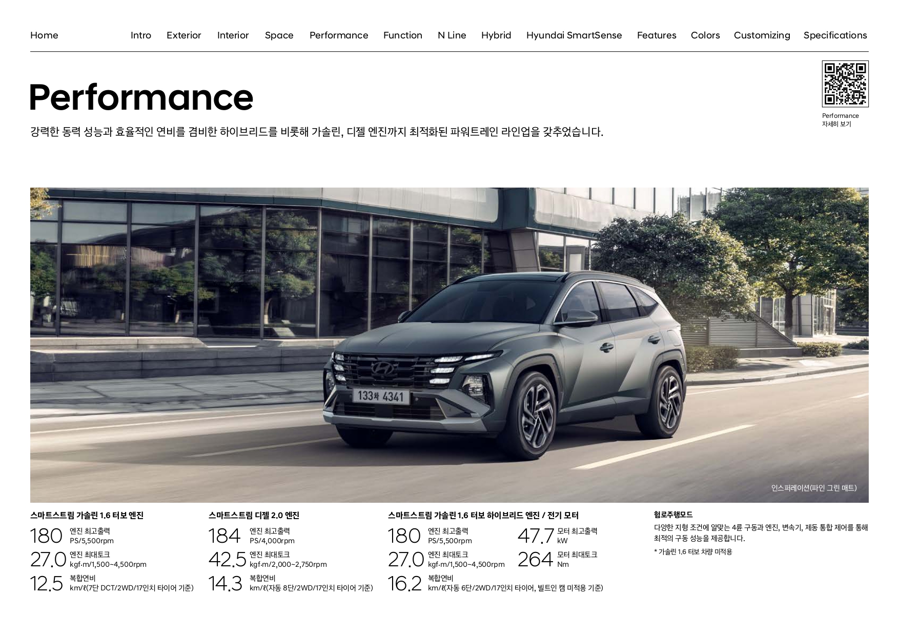 투싼은 앞서 말씀드린 것과 같이, 스포티지에는 없는 디젤 엔진이 있기에 각 모델별 성능 차이가 있는 편이니 유심히 보시면 더욱 좋을 것 같습니다.