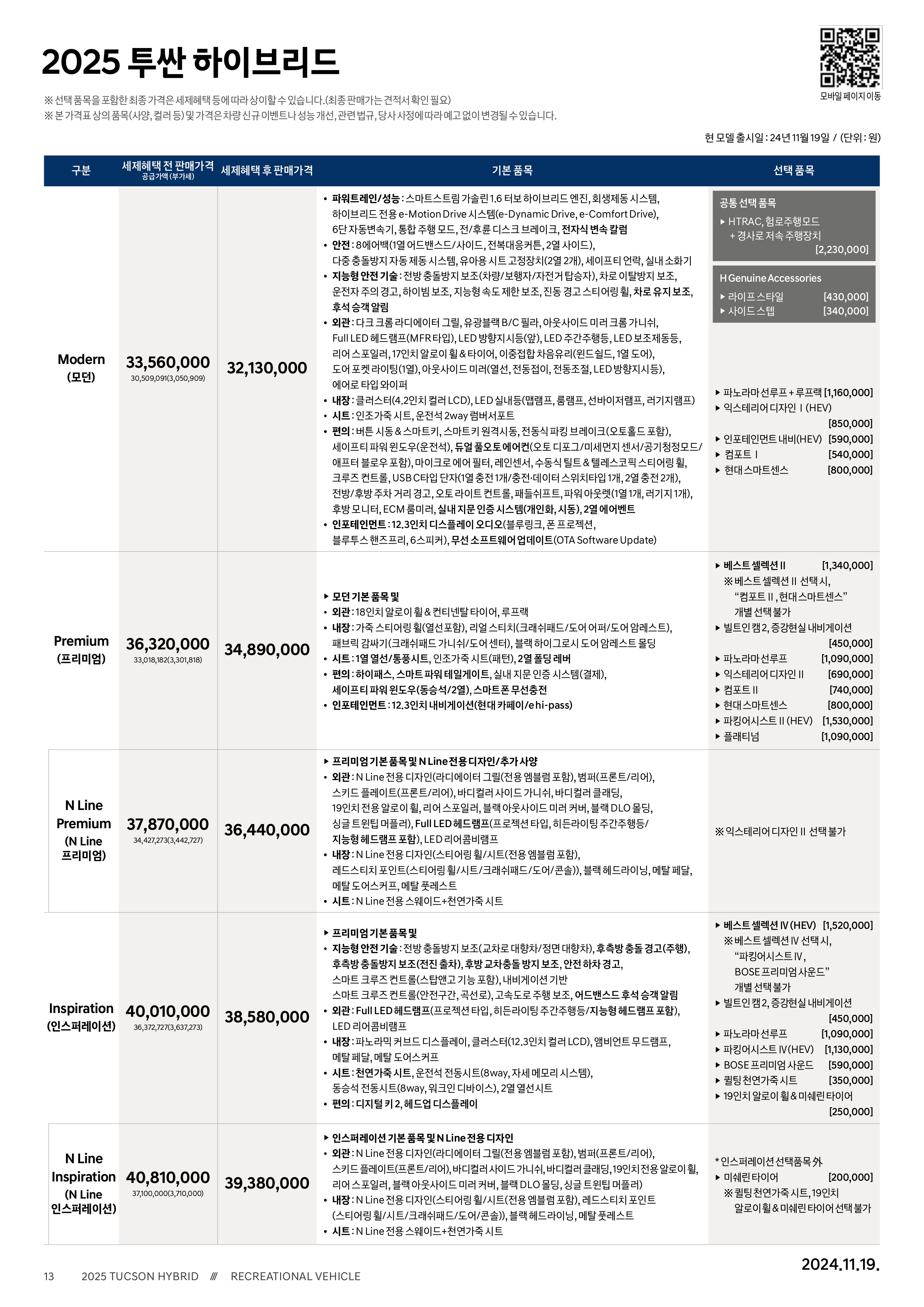 혹시라도, 2025 투싼 모델의 가격표 원본, 그리고 카탈로그가 필요하신 분께서는 아래에서 받아 가시기 바랍니다.
