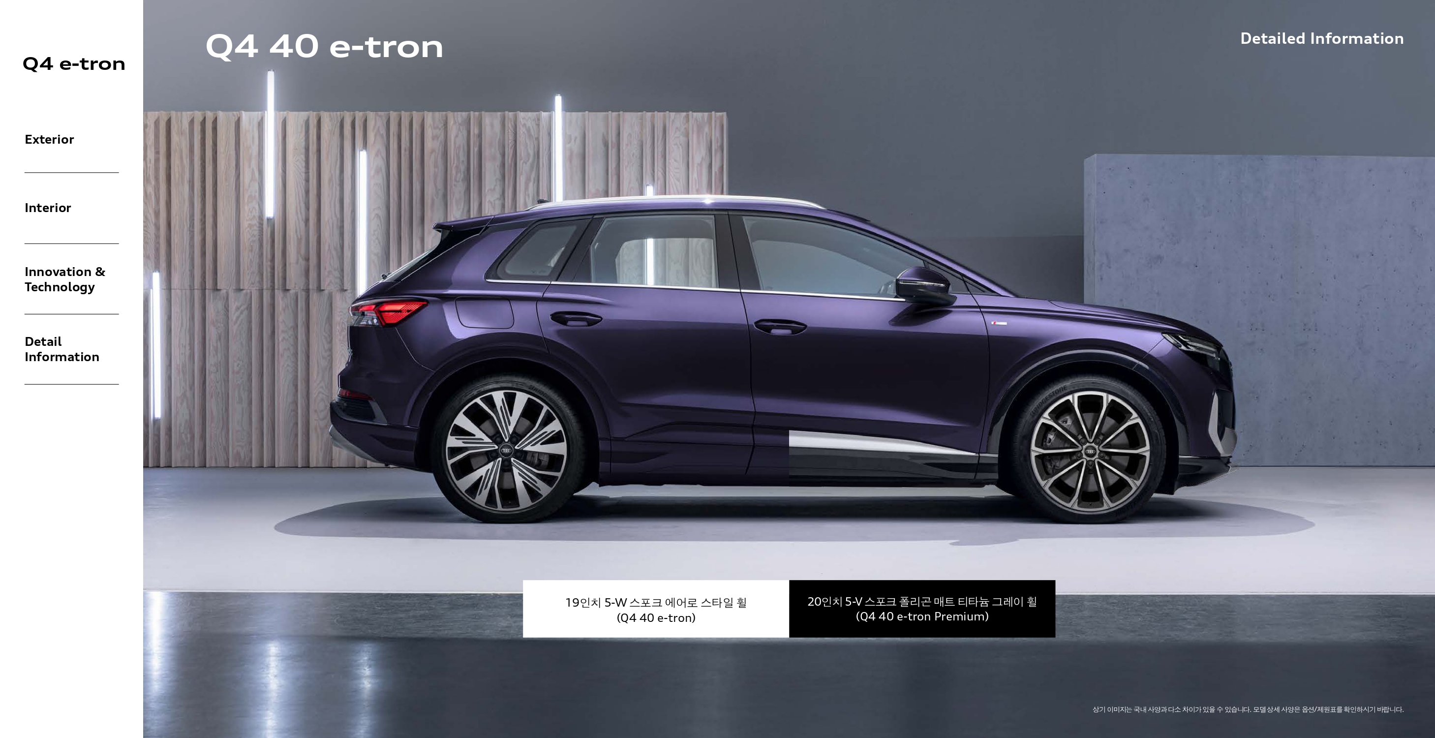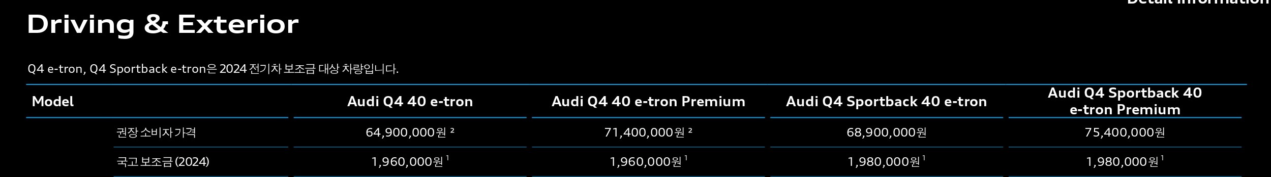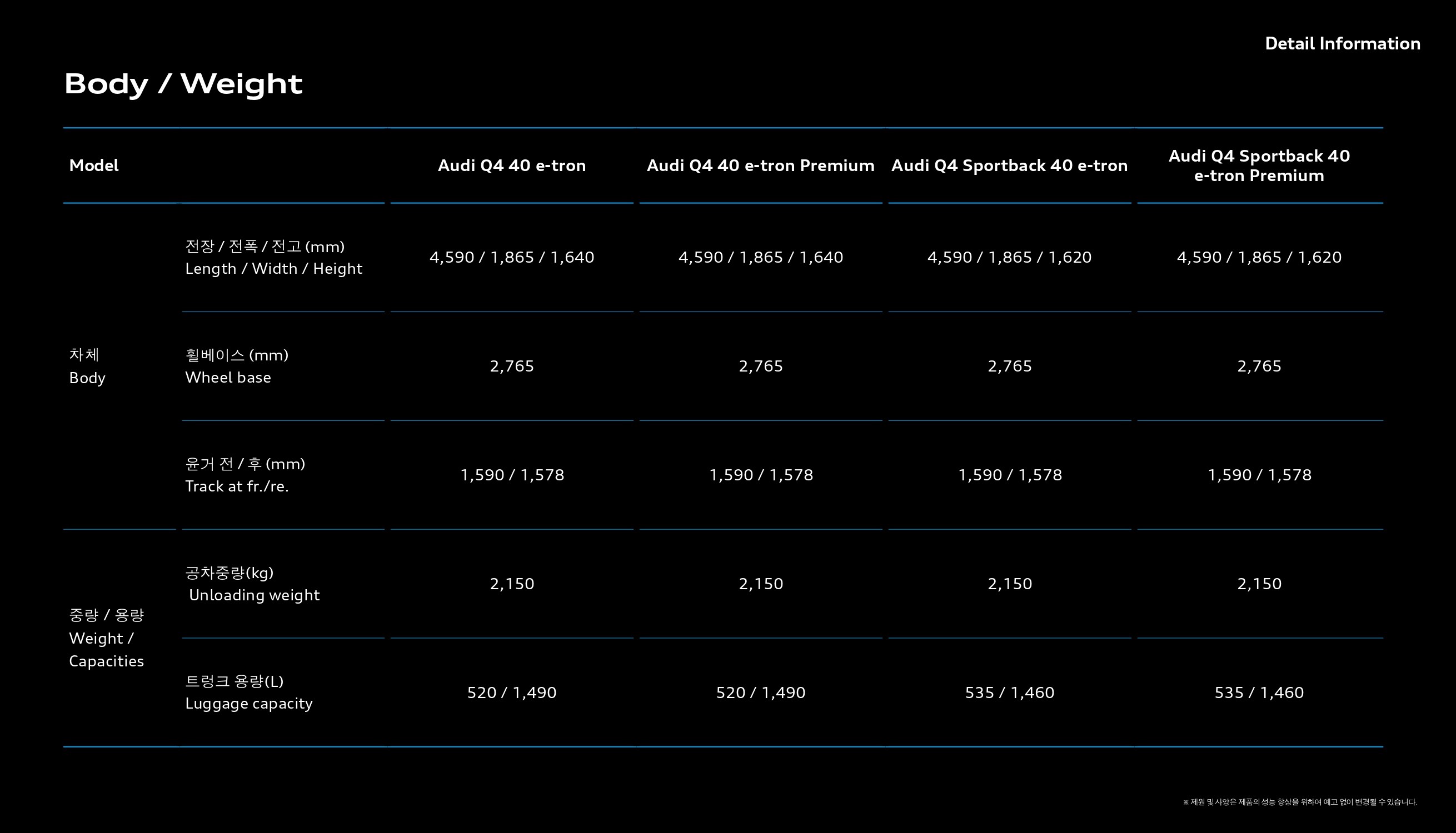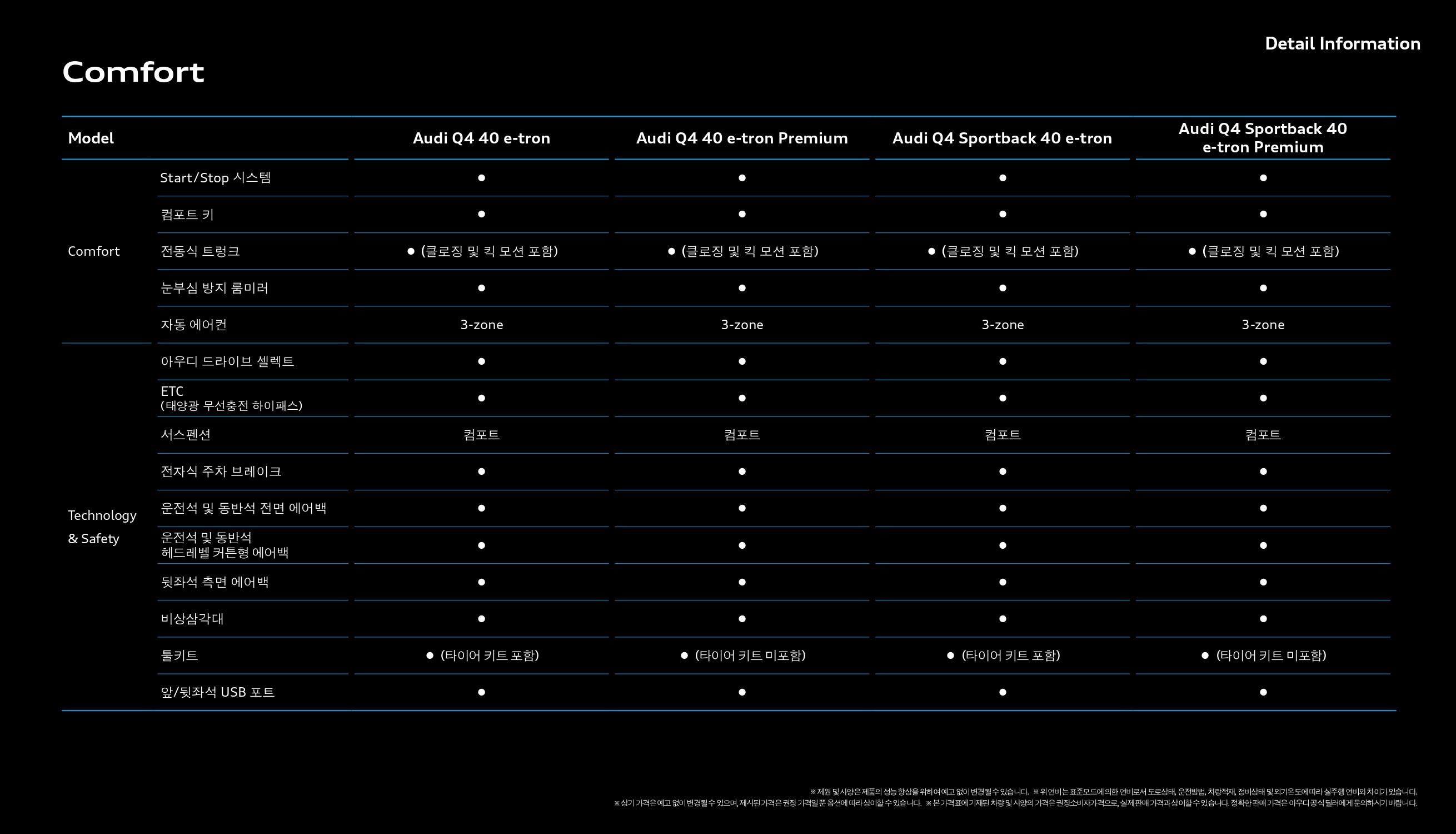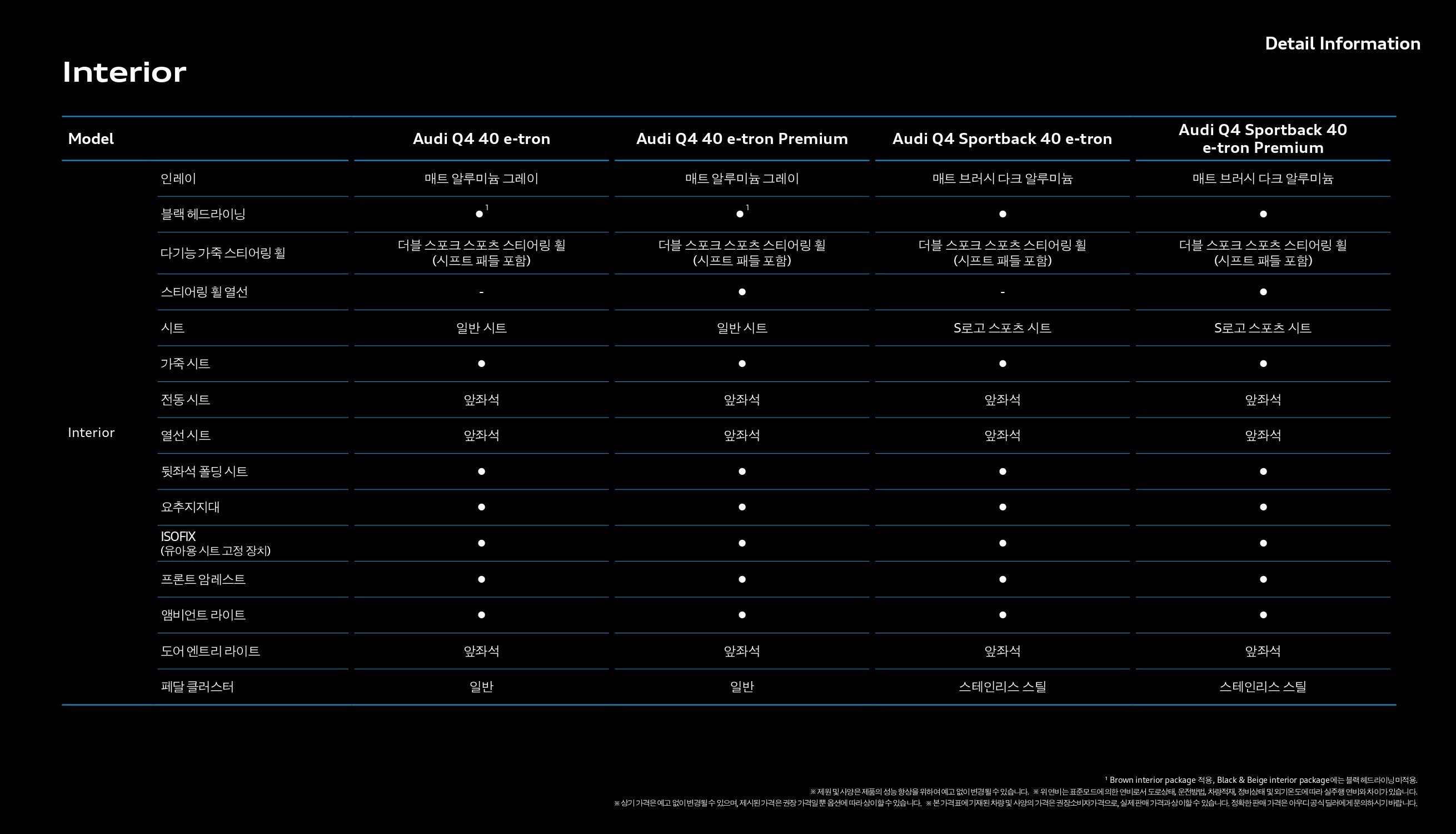 다만, 국내 시장에는 싱글모터 사양의 Q4 40 e-트론 모델만 판매되어서 그런지 전혀 변화가 없습니다.