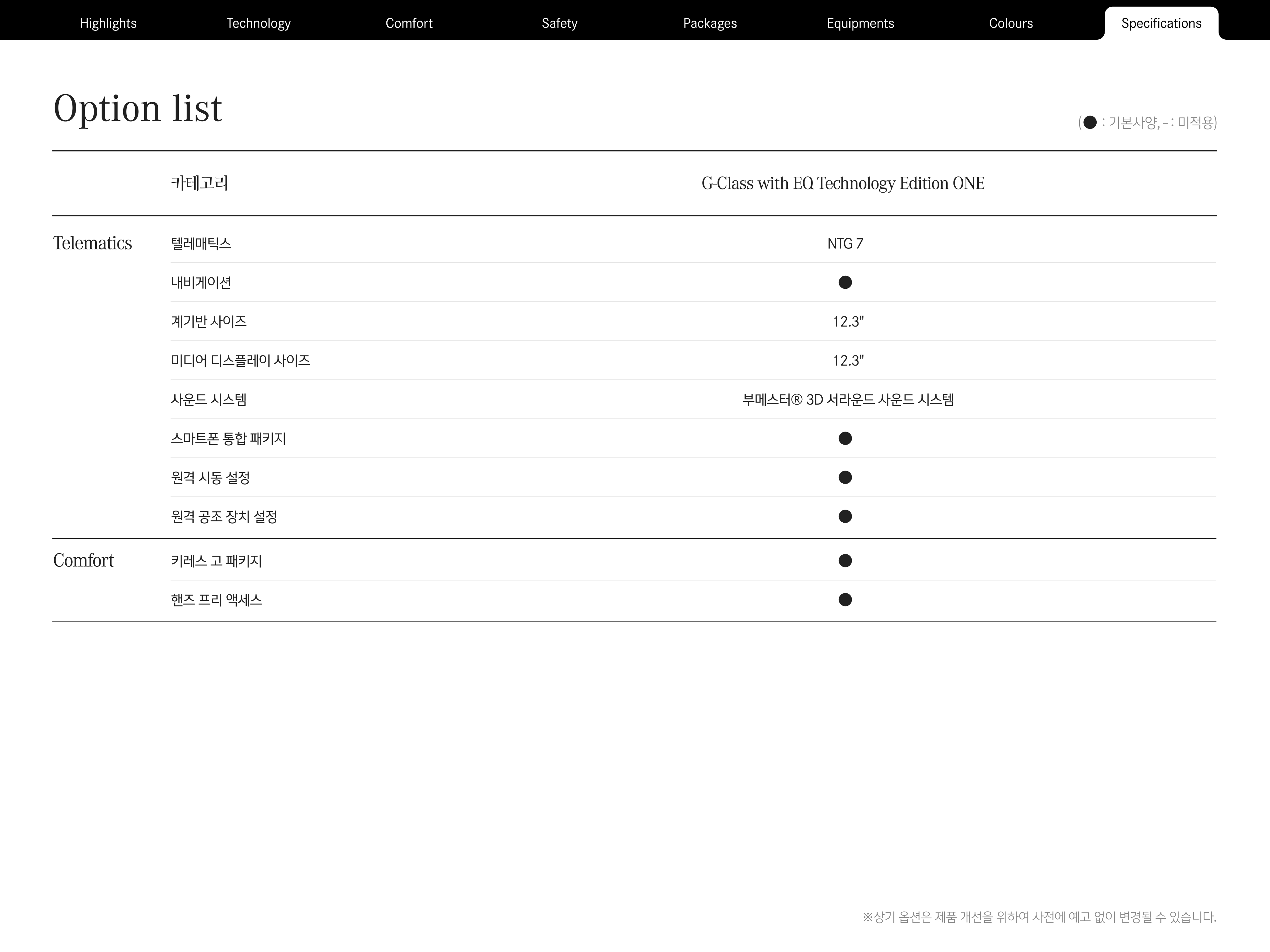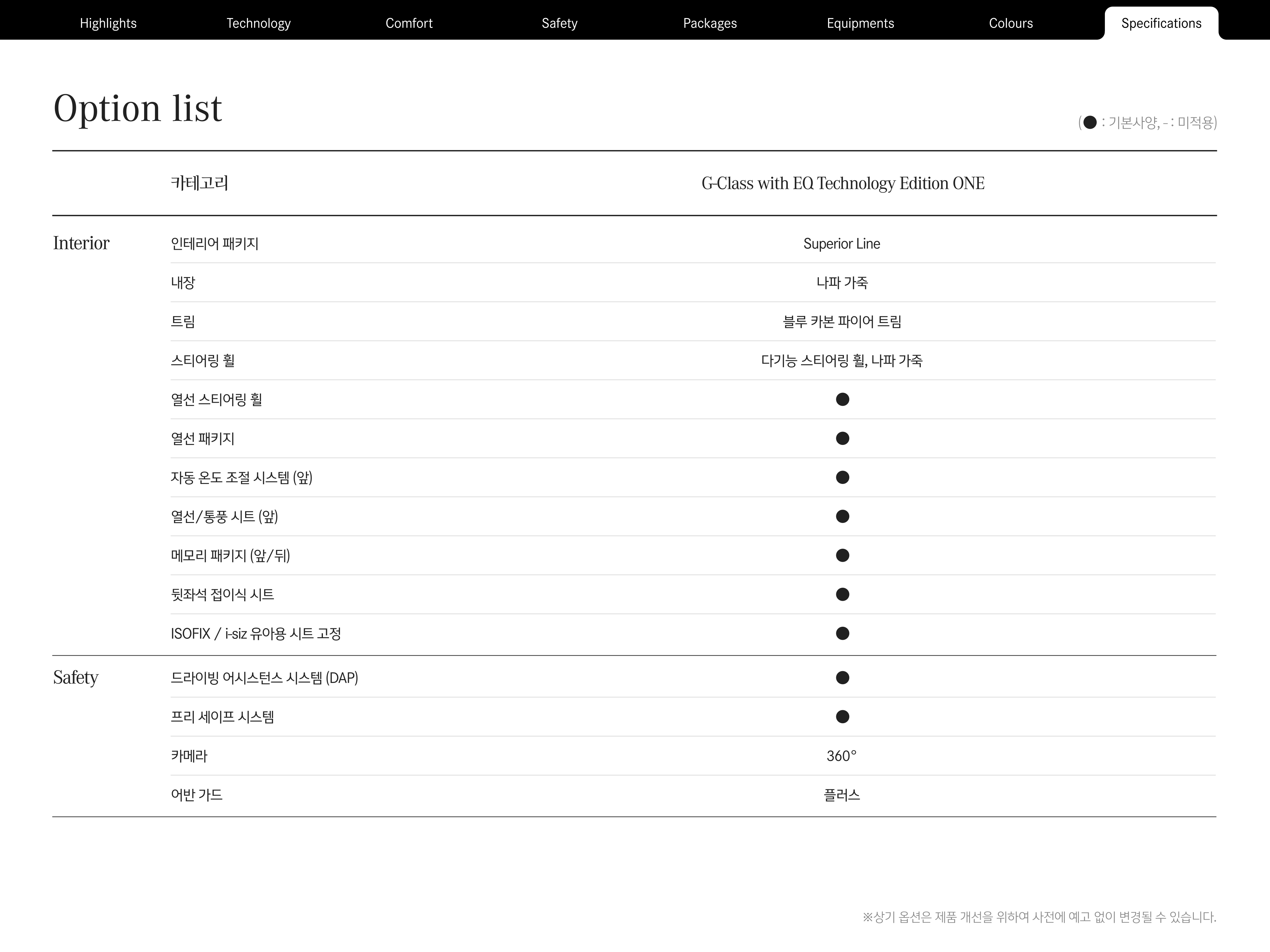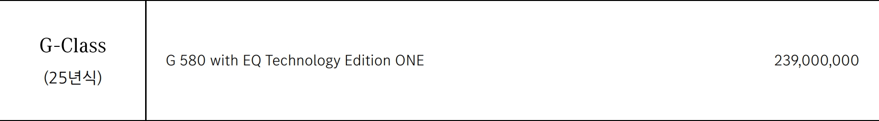 사실, G580 모델 자체가 에디션 원이라는 한정판으로 먼저 출시를 해서, 단일 트림으로 구성되어 있습니다.