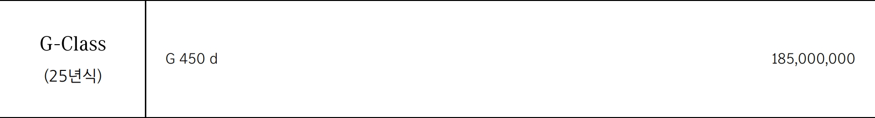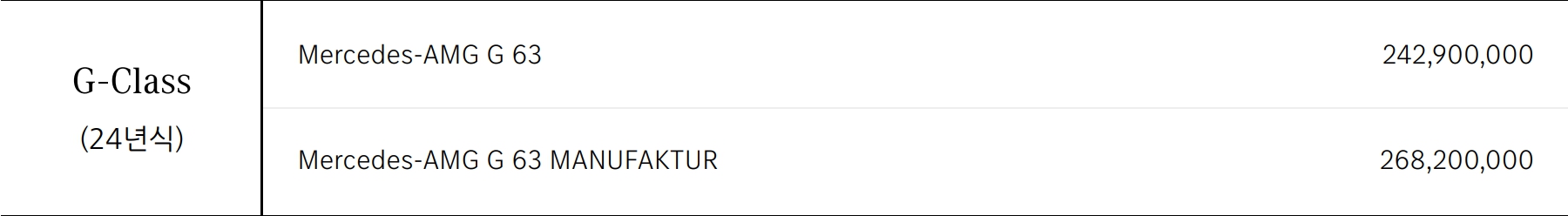 가격을 한 번에 보시면 조금 더 편하실 것 같아, 국내 수입되는 G클래스 모두의 가격표를 가져왔습니다.
