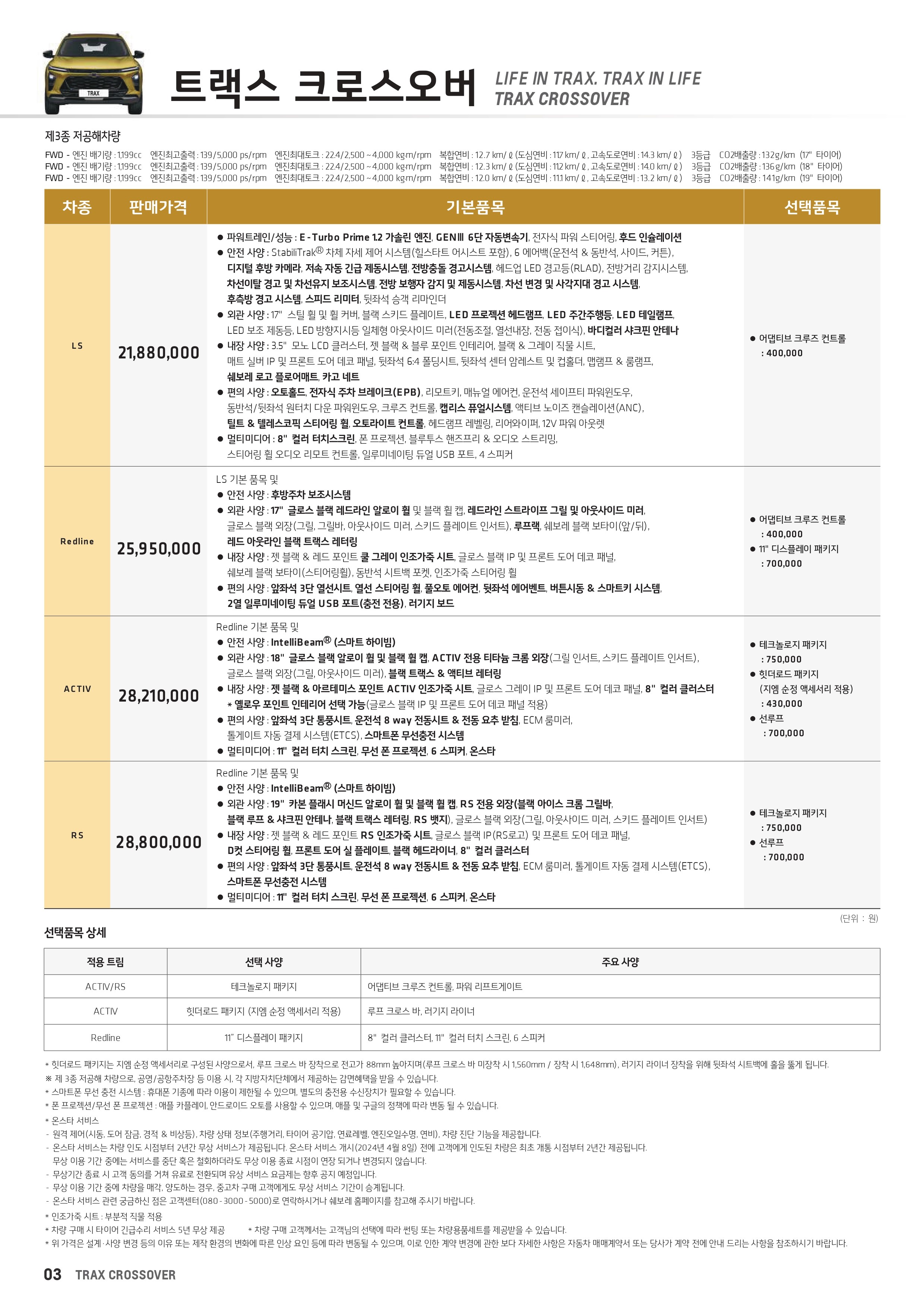 2025 쉐보레 트랙스 가격표 및 프로모션