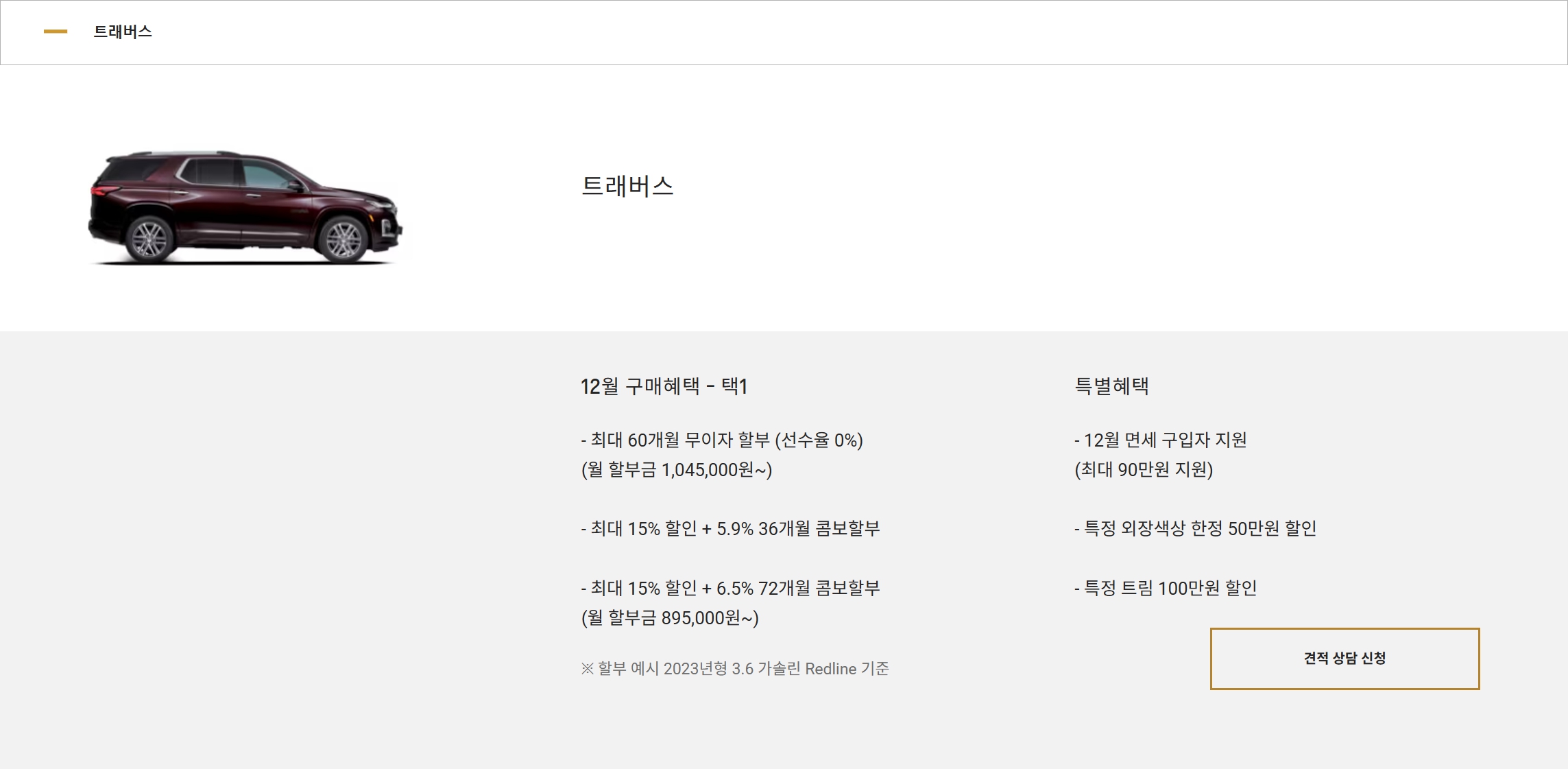 2023 쉐보레 트래버스 가격표 및 프로모션