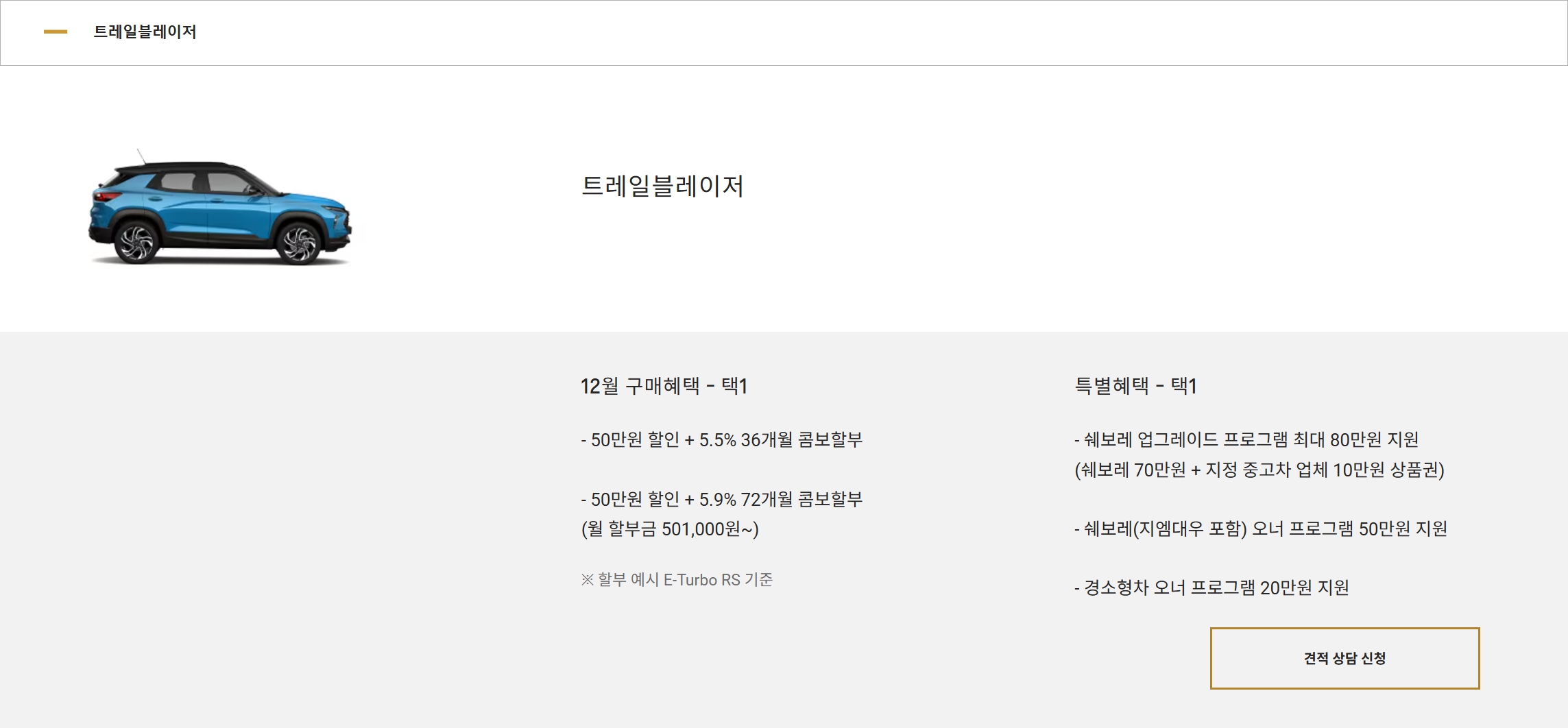 2025 쉐보레 트레일블레이저 가격표 및 프로모션