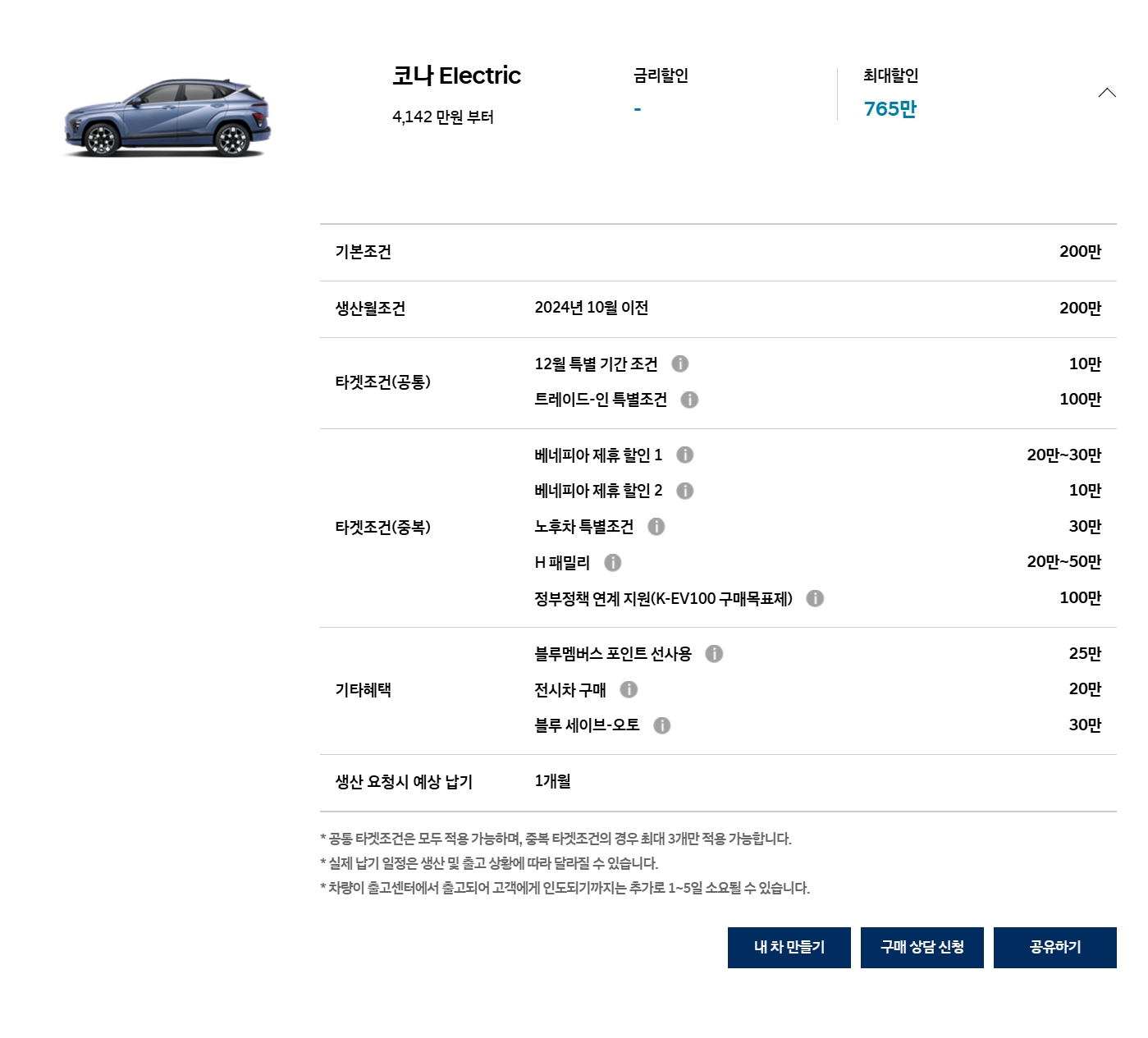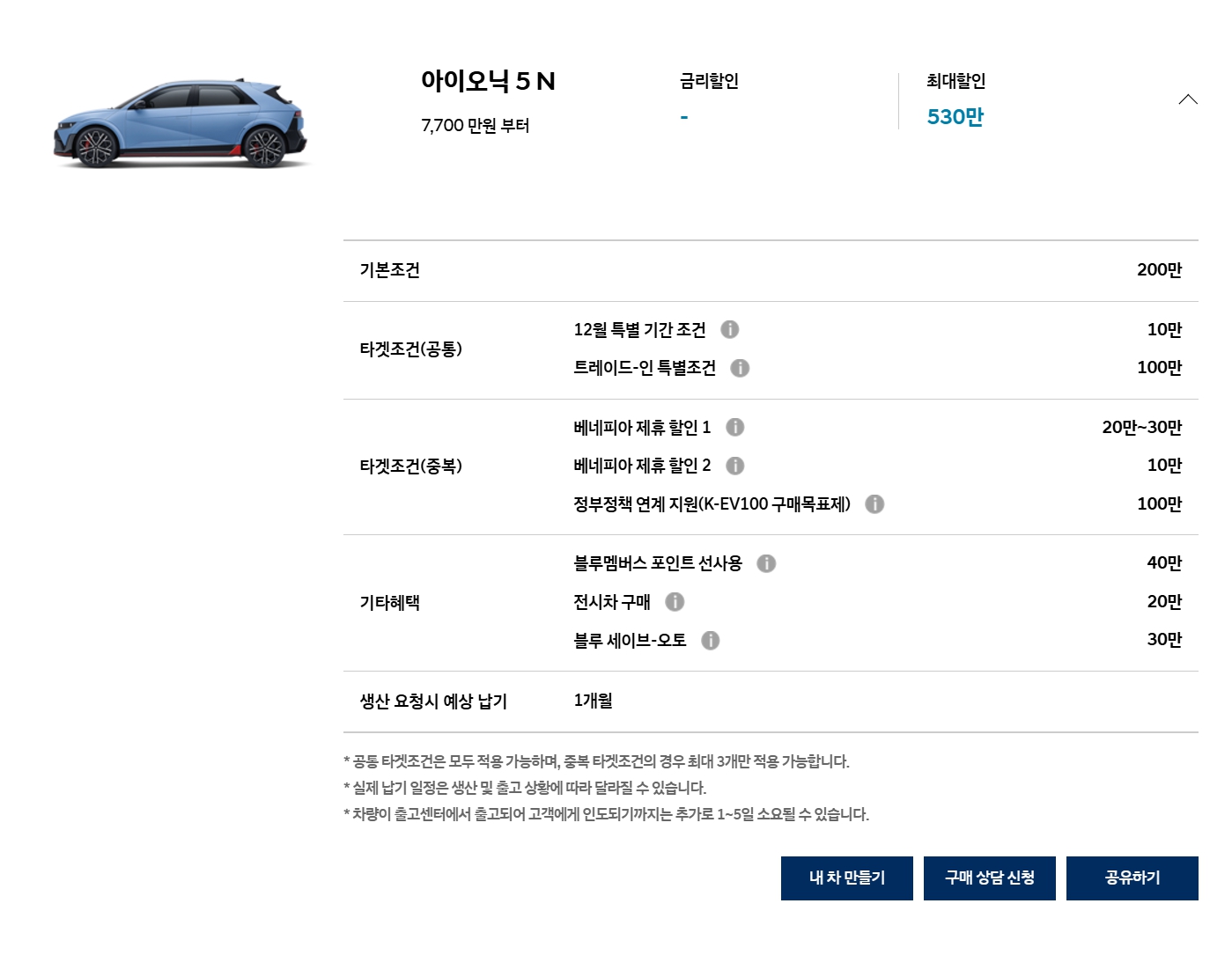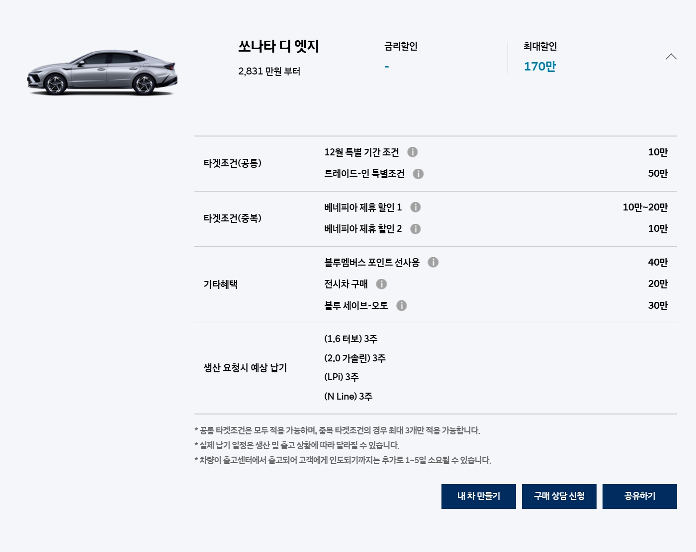 타 차종과 마찬가지로 할인 10만원 빠졌습니다.