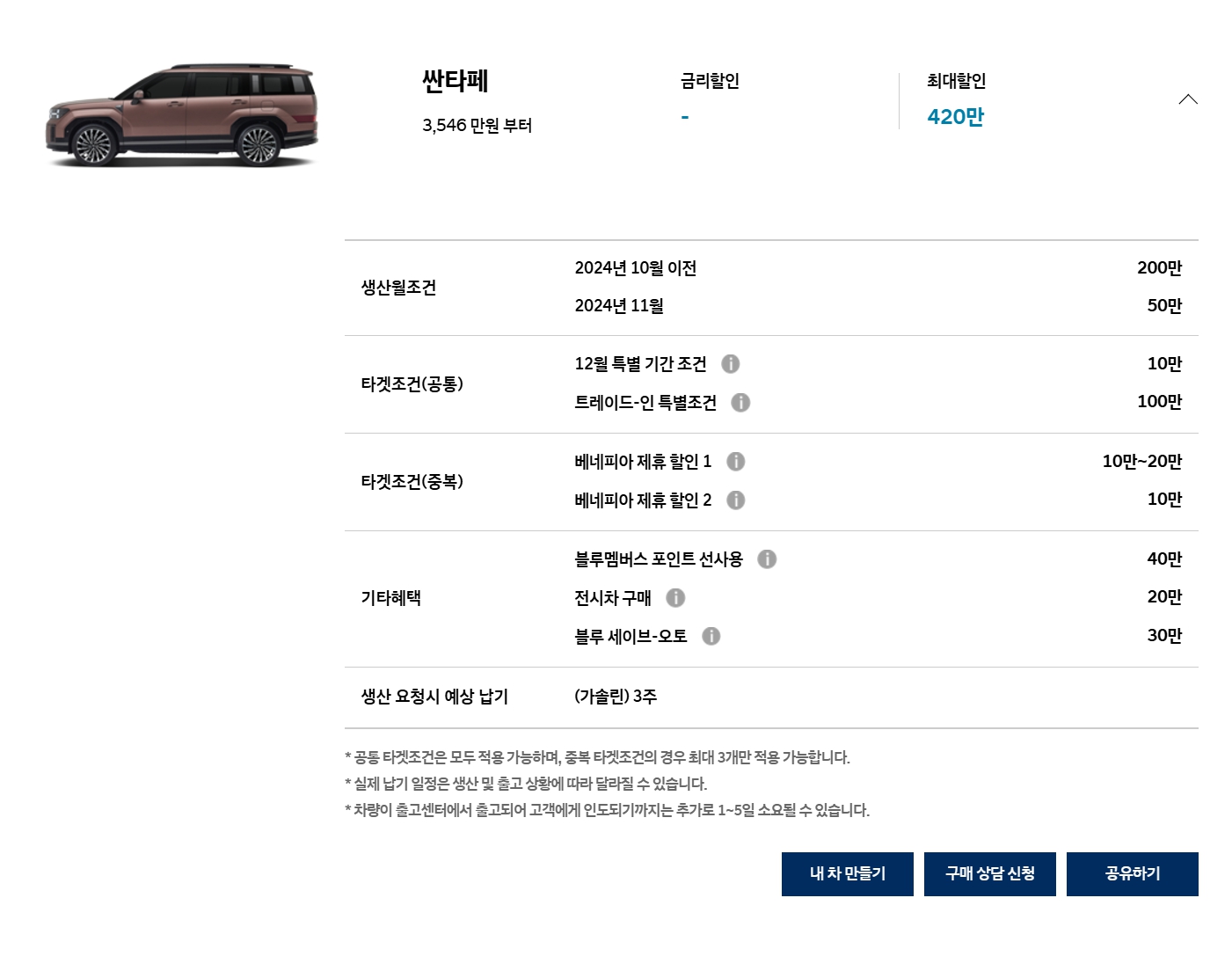 최근 들어 할인을 꽤 자주 하는 싼타페입니다.