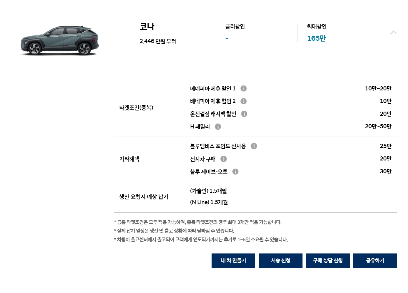 코나도 가끔씩 할인을 한 번씩 하는 모델이긴 한데, 이번 달은 지난달과 마찬가지로 할인이 없습니다.