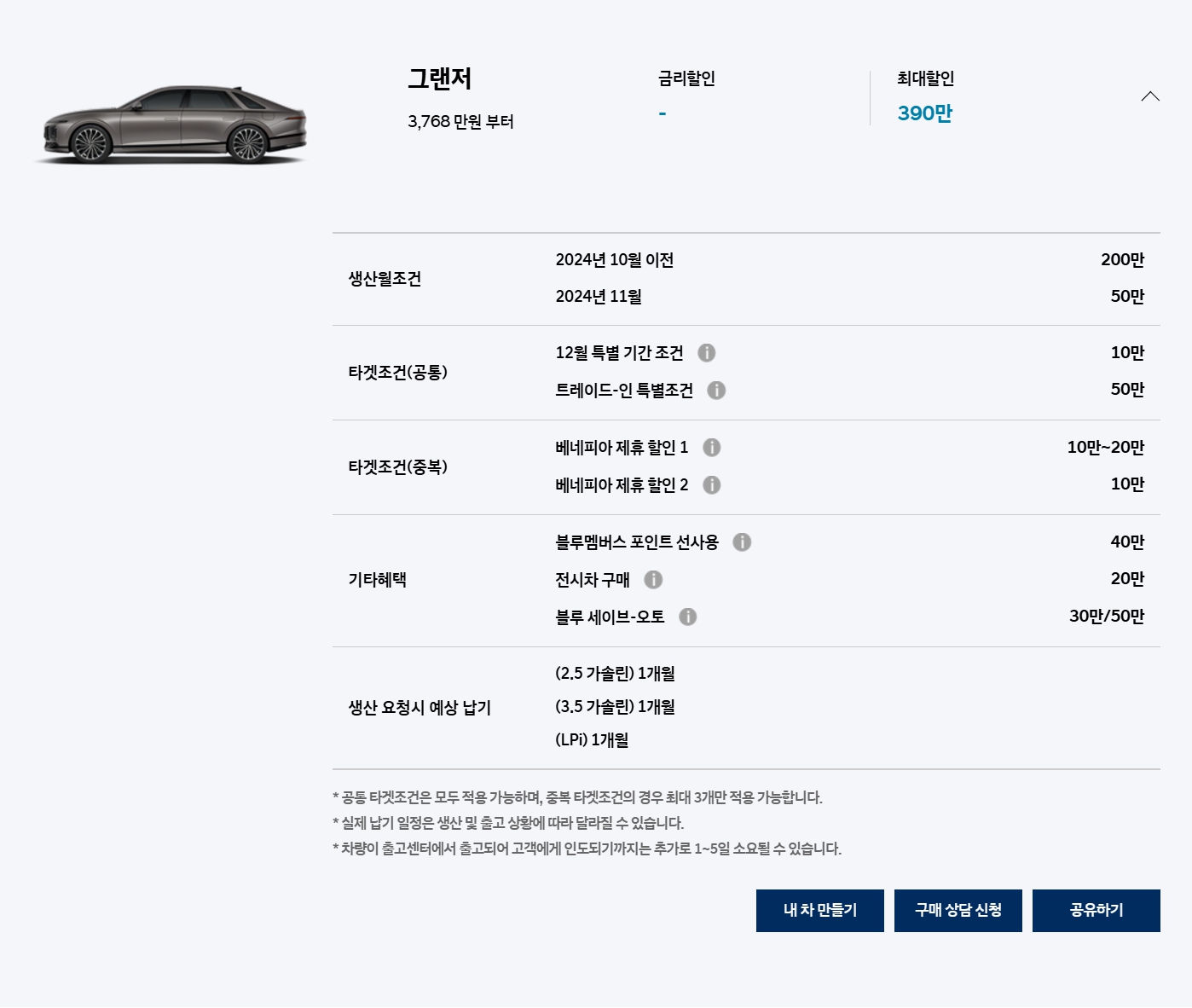다만, 10만원 차이라고는 하지만, 그랜저가 신형 모델임을 감안하면, 할인 폭 자체는 꽤 큰 편입니다.